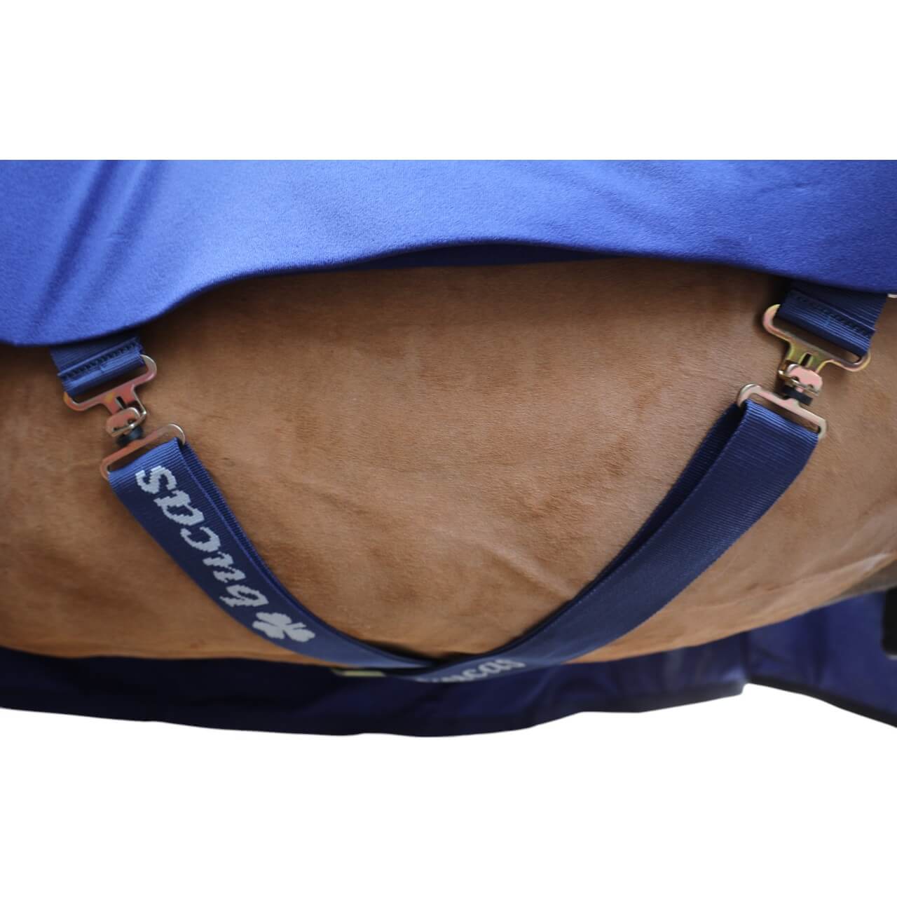 Dank des innovativen Stay-dry-Gewebes bleibt dein Pferd trocken und komfortabel, indem Feuchtigkeit effizient abgeführt wird. Der magnetische Snap-lock-Verschluss und der T-Bar-System-Verschluss gewährleisten einen sicheren Halt, während der Schweifriemen ein Verrutschen verhindert. Die Decke ist in verschiedenen Größen erhältlich, um optimal auf die Bedürfnisse deines Pferdes einzugehen.