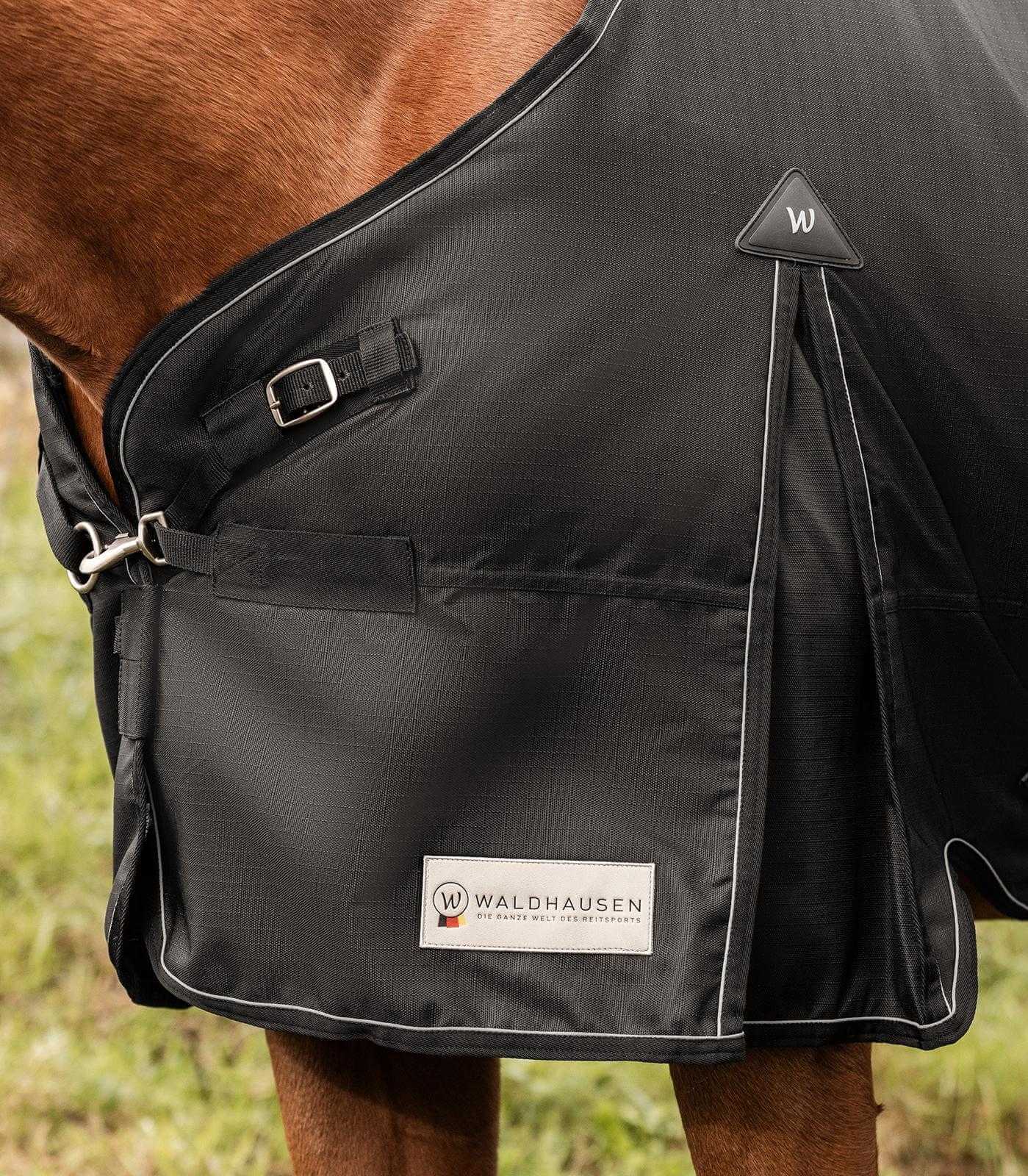Outdoordecke Scandic, 50 g von Waldhausen ist die ideale Wahl für Pferdebesitzer, die Wert auf Schutz, Komfort und Stil legen. Diese Decke bietet wasserdichte, atmungsaktive Eigenschaften und ist gleichzeitig leicht und flexibel, was sie zur perfekten Begleiterin für unbeständiges Wetter macht.