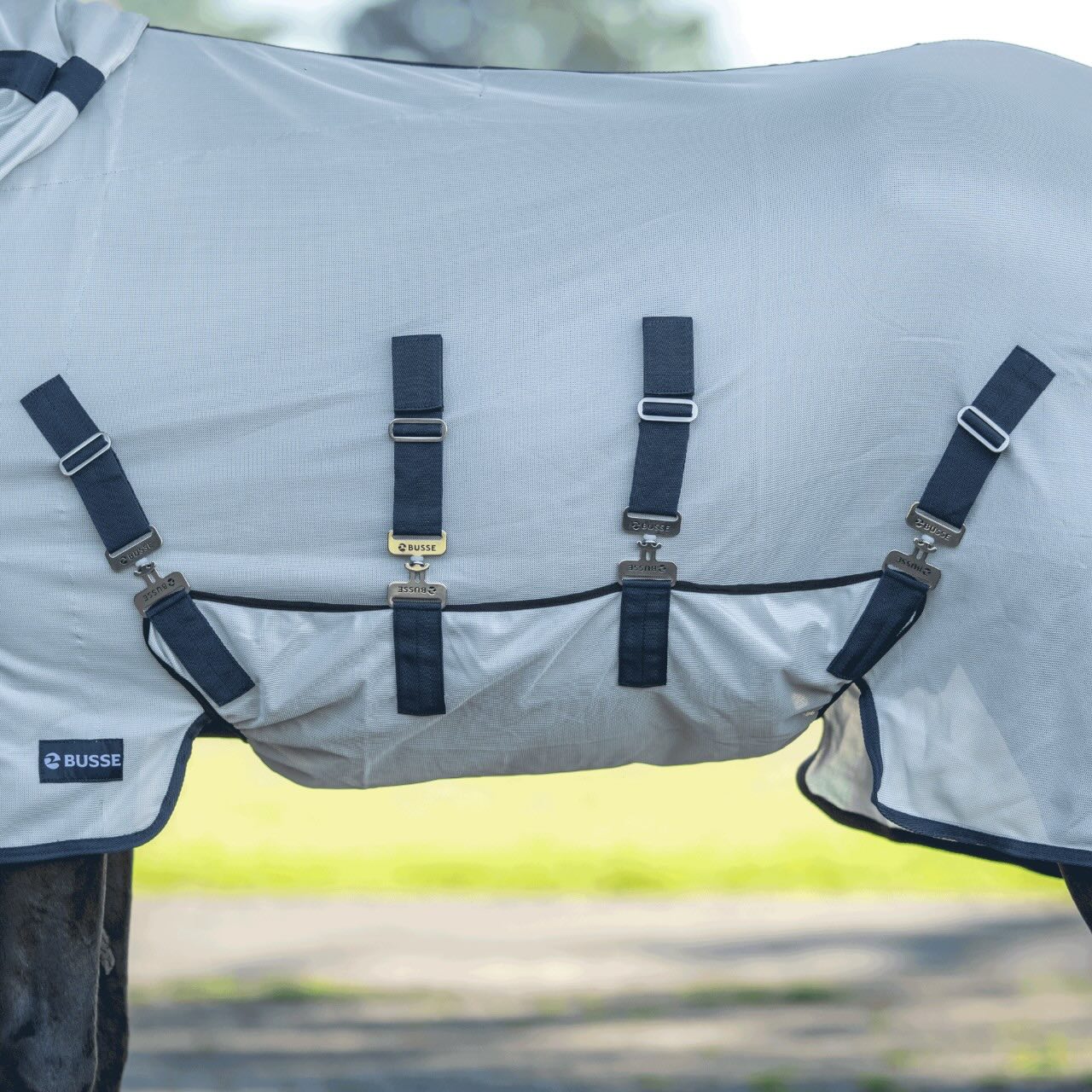 Busse Outdoordecke Superb AB Fliegendecke vereint robusten Insektenschutz mit durchdachter Flexibilität für Stall, Weide und Paddock. Als konsequente Weiterentwicklung der bewährten SUPERB überzeugt sie mit optimierter Passform, abnehmbarem Bauchlatz und funktionalem Halsteil. Für entspannte Stunden auf der Weide – selbst bei starkem Fliegen- und Bremsenaufkommen.