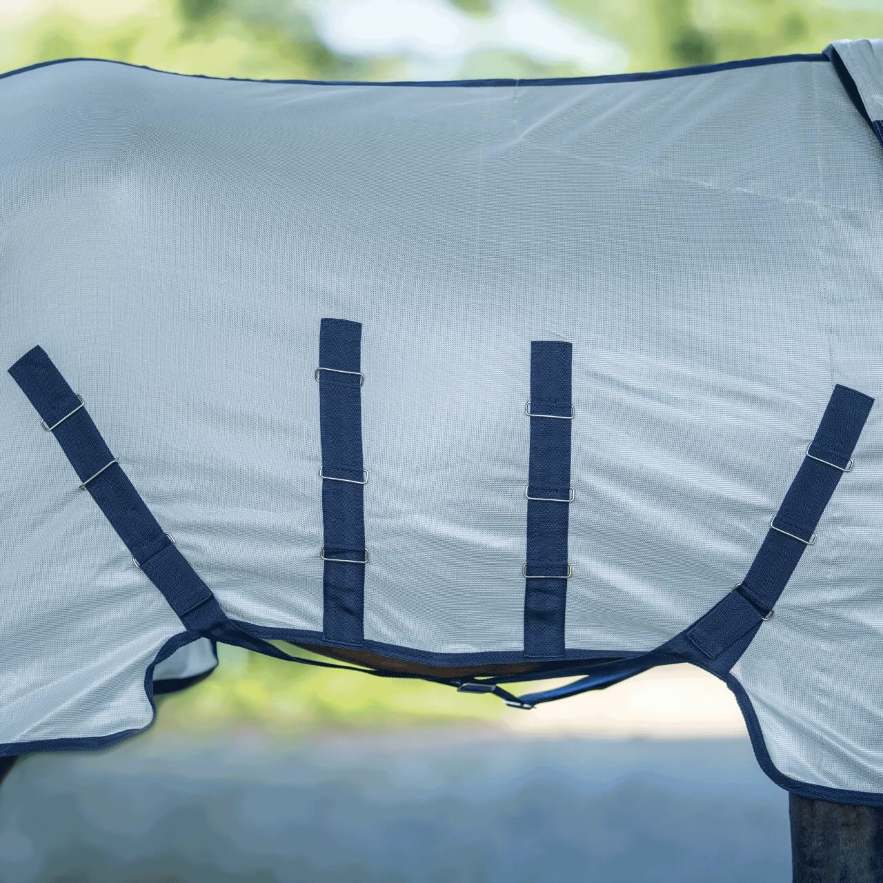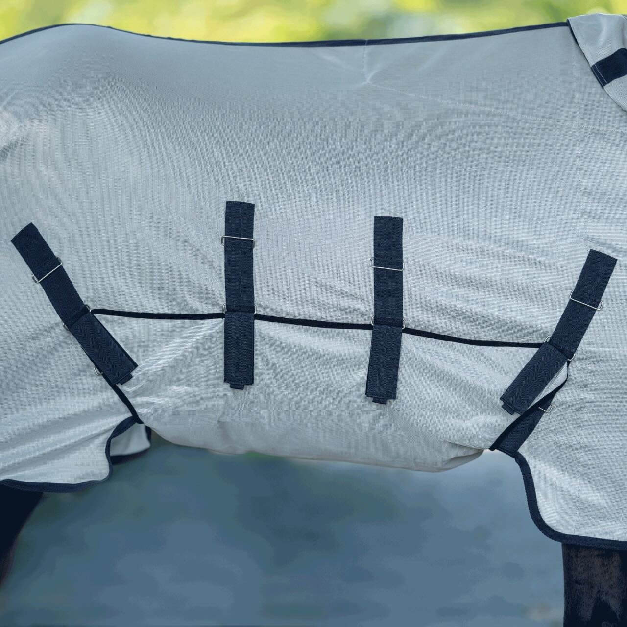 Der Bauchlatz ist anatomisch geformt und unterstützt eine körpernahe Passform im sensiblen Bauchbereich. Durch die elastische Einfassung passt er sich den Bewegungen deines Pferdes flexibel an. Das sorgt für hohen Tragekomfort auf der Weide, im Offenstall oder auf dem Paddock. Gleichzeitig wird das Verrutschen der Fliegendecke effektiv minimiert. Die beidseitige Einstellbarkeit an der Decke ermöglicht dir eine individuelle Anpassung. So stellst du sicher, dass der Insektenschutz optimal anliegt und empfindliche Partien zuverlässig abgedeckt sind.
