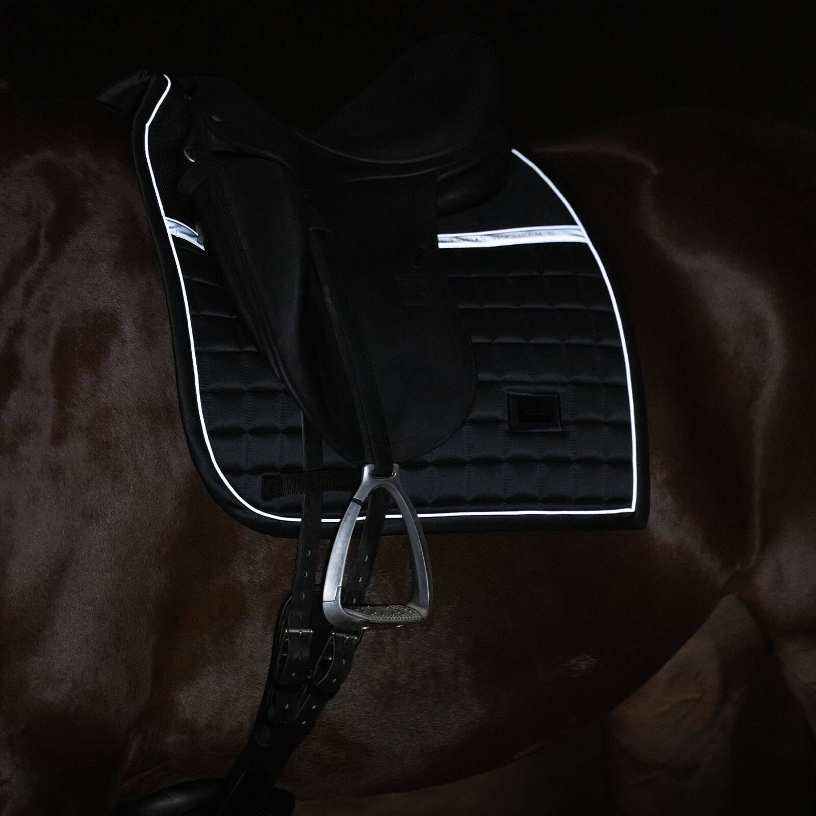 Dressurschabracke Luminous Black HW 2022 Schabracke von Equestrian Stockholm vereint stilvolles Design mit herausragender Funktionalität. Diese elegante Schabracke in zeitlosem Schwarz ist mit reflektierenden Details ausgestattet, die deinem Pferd nicht nur einen einzigartigen Look verleihen, sondern auch für zusätzliche Sichtbarkeit sorgen. Entdecke die perfekte Kombination aus Stil und Komfort für dein Dressurpferd.