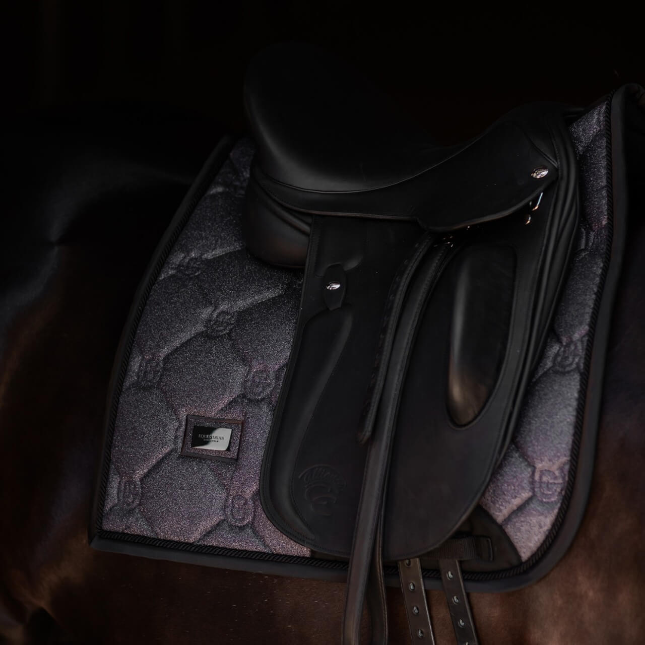 Dressurschabracke Purple Glimmer Schabracke von Equestrian Stockholm kombiniert luxuriöses Design mit herausragender Funktionalität. Lass dich von der einzigartigen Optik mit lila Glitzer und erstklassigen Materialien begeistern, die deinem Pferd maximalen Komfort bieten.