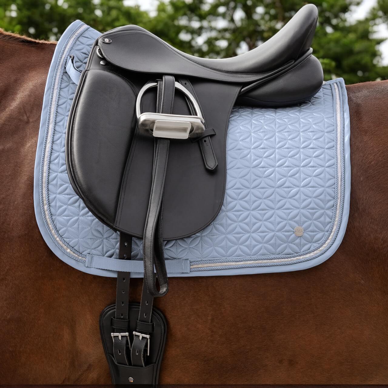 Die Schabracke Rom Saddle Pad besticht durch ihre florale Steppung und den Hauch von Luxus, den die glitzernde Einfassung und doppelte Kordel verleihen. Diese Details sorgen nicht nur für eine edle Optik, sondern tragen auch zur Langlebigkeit und Strapazierfähigkeit der Schabracke bei.