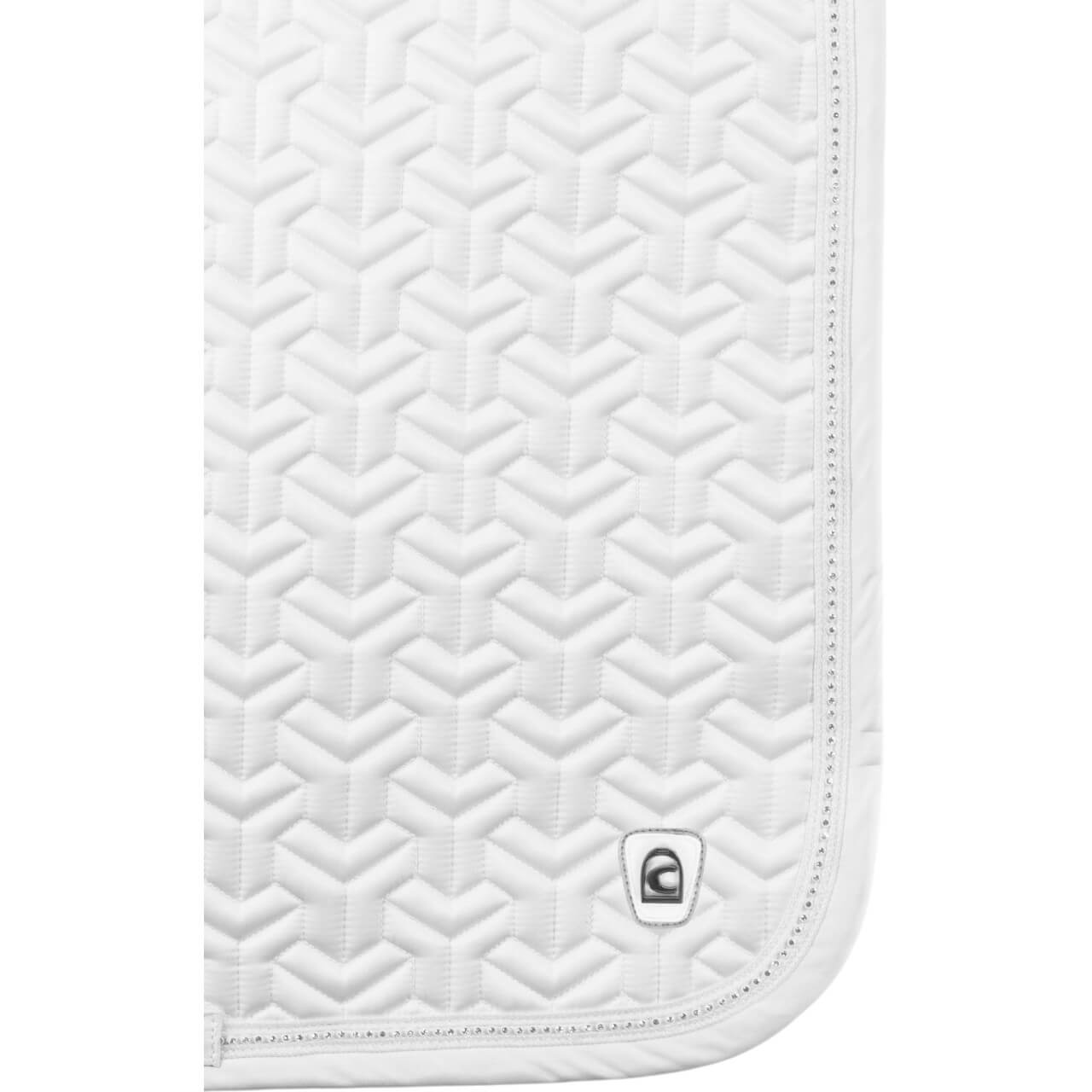 Die Dressurschabracke beeindruckt durch ein grafisches Steppmuster und ein glänzendes Obermaterial, das ihr eine edle Ausstrahlung verleiht. Ein funkelndes Kristallband setzt elegante Akzente, während die Cavallo-Logo-Patches in Gunmetal-Optik das exklusive Design abrunden. Diese Schabracke ist ein echter Blickfang im Stall und auf dem Turnier, der deine Präsenz im Dressurviereck verstärkt.