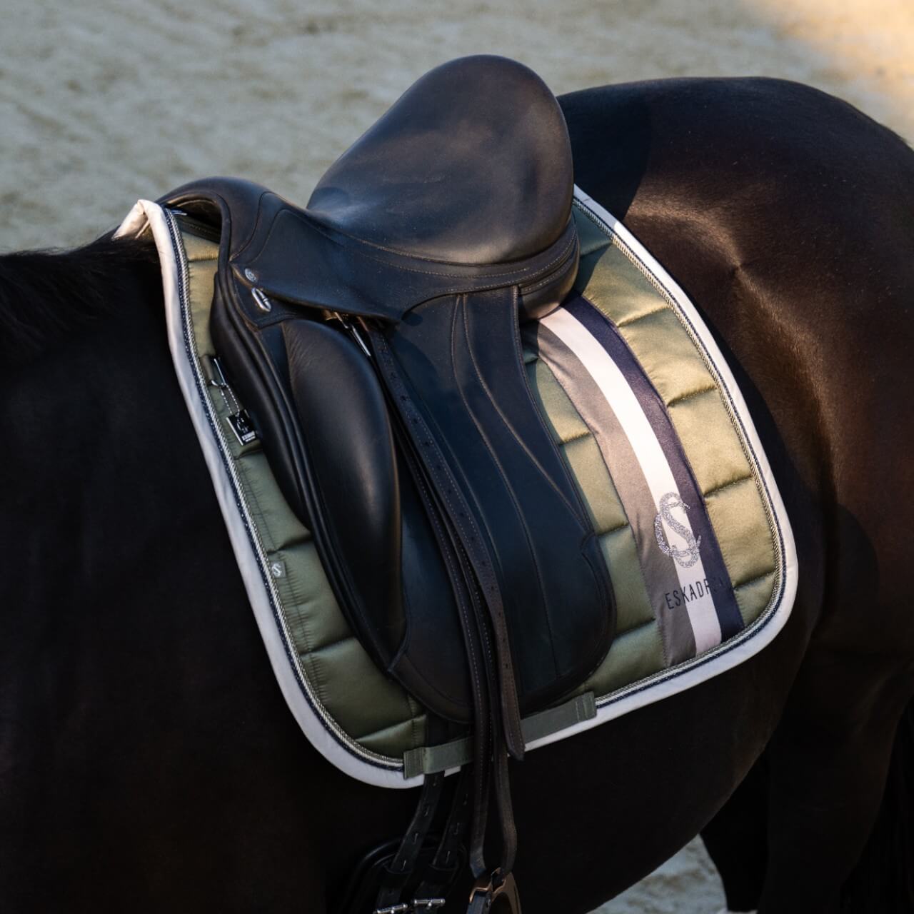 Dressurschabracke Big Square Mattgloss Classic Sports FS 2025 Schabracke von Eskadron ist das perfekte Accessoire für stilbewusste Reiterinnen und Reiter. Diese exklusive Schabracke überzeugt durch ihr edles Design und hohe Funktionalität. Erlebe die perfekte Kombination aus Ästhetik und Komfort für dein Pferd.