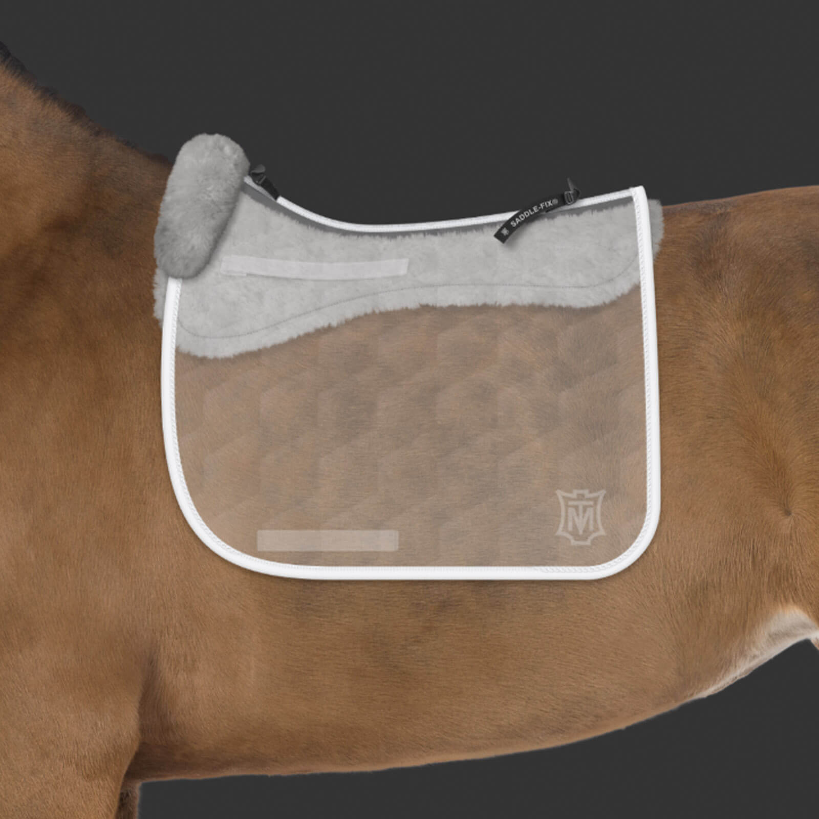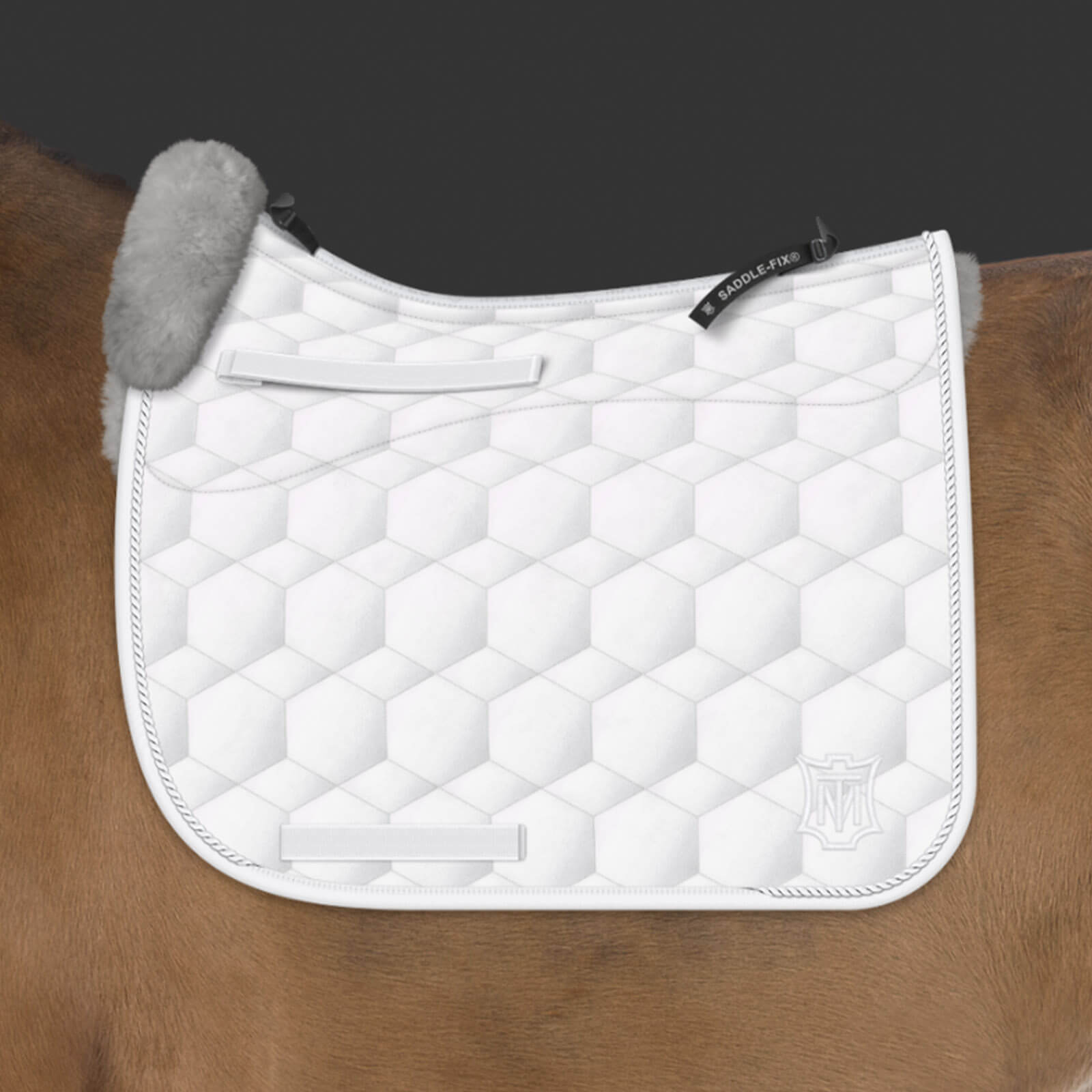 Dieses Modell besticht nicht nur durch Komfort, sondern auch durch seine ästhetischen Merkmale. Die Einfassung in Weiß kombiniert mit einer weißen Kordel und einem Top Band in Weiß verleiht der Schabracke einen exklusiven klassischen Look. Zusätzlich bietet das Saddle Fix-System eine innovative Befestigung, die den Sattel sicher und stabil hält, ohne die Bewegungsfreiheit deines Pferdes einzuschränken.
