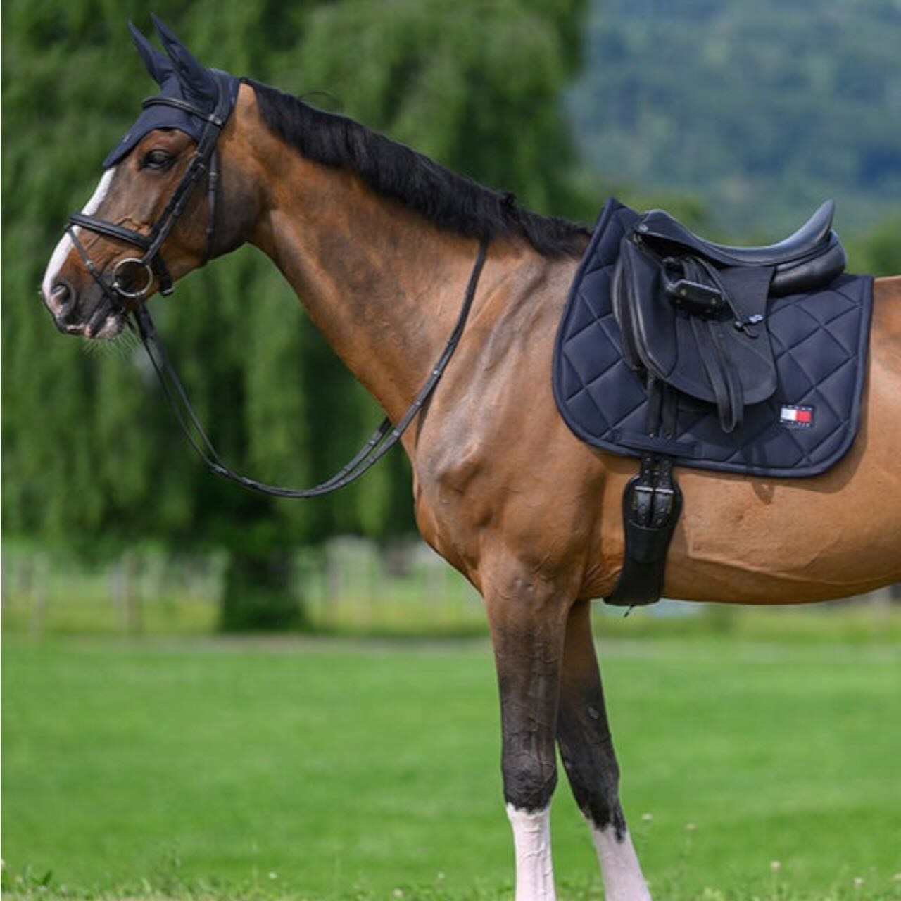 Die Tommy Hilfiger Equestrian Dressurschabracke Columbia FS 2026 präsentiert sich mit einer klassischen, großen Diamant-Steppung, die zeitlose Eleganz und sportliche Funktionalität verbindet. Der charakteristische Tommy Hilfiger-Patch auf beiden Seiten verleiht der Schabracke eine hochwertige Markenoptik. Durch ihre klare Linienführung passt sie ideal zu modernen Dressursätteln. Die harmonische Form unterstützt eine saubere Lage unter dem Sattel. Dadurch entsteht ein gepflegter Auftritt im täglichen Training oder auf dem Turnier. Gleichzeitig fügt sich die Schabracke stilvoll in jedes Reitsport-Outfit ein.