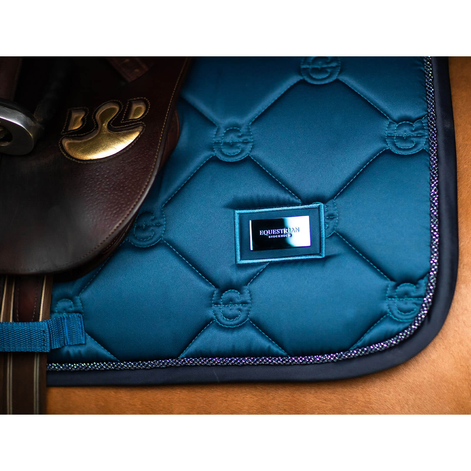 Schabracke Springen Blue Meadow FS 2023 Springschabracke von Equestrian Stockholm ist die perfekte Wahl für anspruchsvolle Reiter. Diese Springschabracke kombiniert stilvolles Design mit herausragender Funktionalität und bietet dir und deinem Pferd optimalen Komfort bei jedem Ritt. Erlebe die perfekte Symbiose aus Eleganz und Technik, die deine Reitstunden unvergesslich macht.