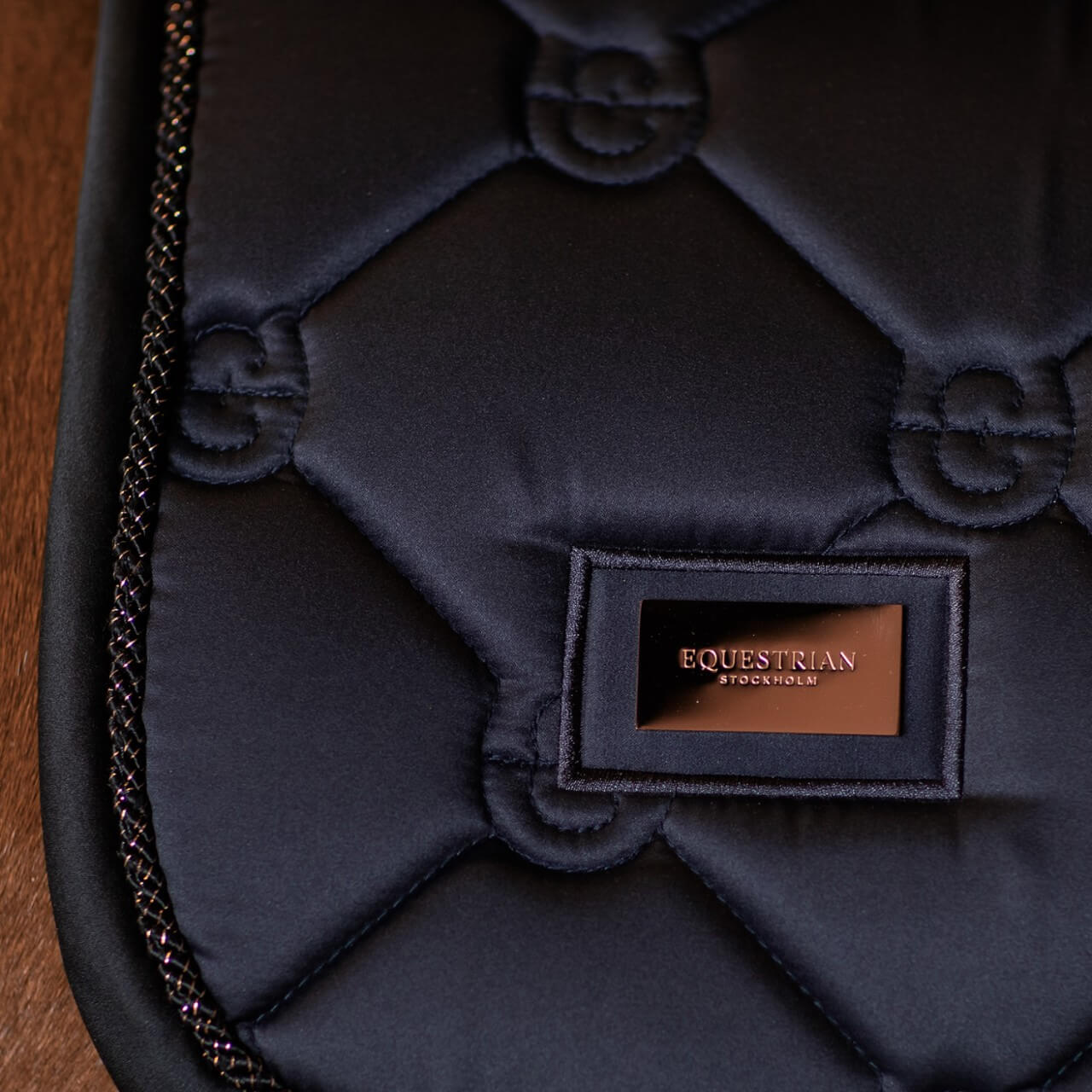 Springschabracke Jump Saddle Pad Dark Ocean Schabracke Springen von Equestrian Stockholm bietet dir eine Kombination aus exklusivem Design und außergewöhnlicher Funktionalität. Lass dein Pferd bei jedem Sprung in einem edlen Dunkelblau mit roségoldenen Akzenten erstrahlen, während das innovative Material für optimalen Komfort sorgt.