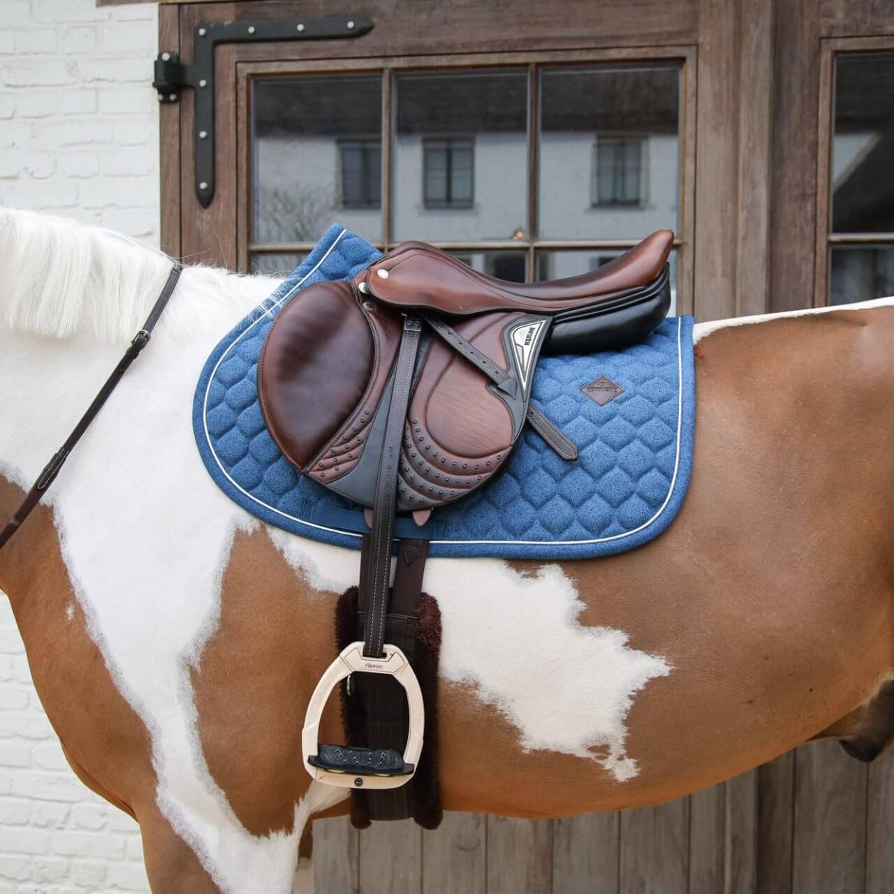 Die Schabracke Melange überzeugt durch ihr Premium-Baumwollgewebe, das für ein angenehmes Tragegefühl und eine lange Haltbarkeit sorgt. Die sorgfältige Verarbeitung gewährleistet eine gleichmäßige Polsterung, die den Druck optimal verteilt und somit dem Pferderücken zusätzlichen Schutz bietet. Durch ihre klassische Passform liegt sie stabil unter dem Sattel, ohne zu verrutschen. Die dezente, aber edle Melange-Struktur hebt sich von herkömmlichen Designs ab und setzt stilvolle Akzente. Gleichzeitig sorgt die Materialwahl für ein angenehmes Klima zwischen Pferd und Sattel. Die Schabracke ist in Varianten für Dressur- und Springsättel erhältlich.