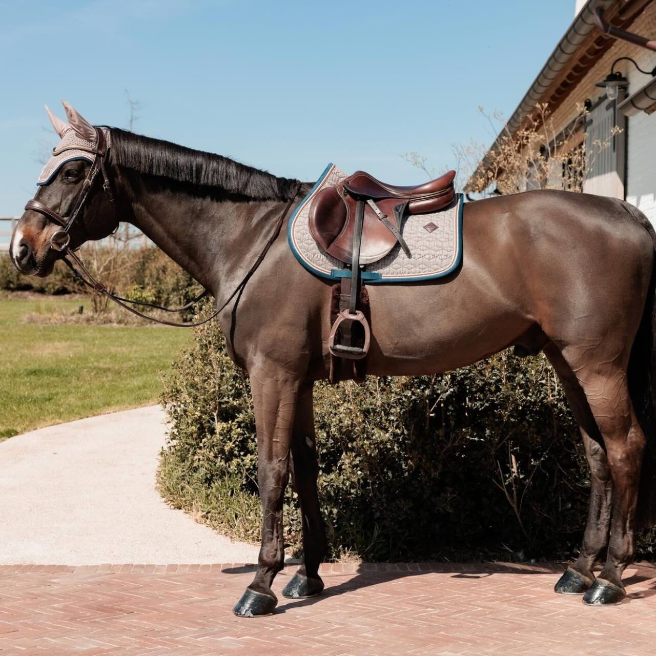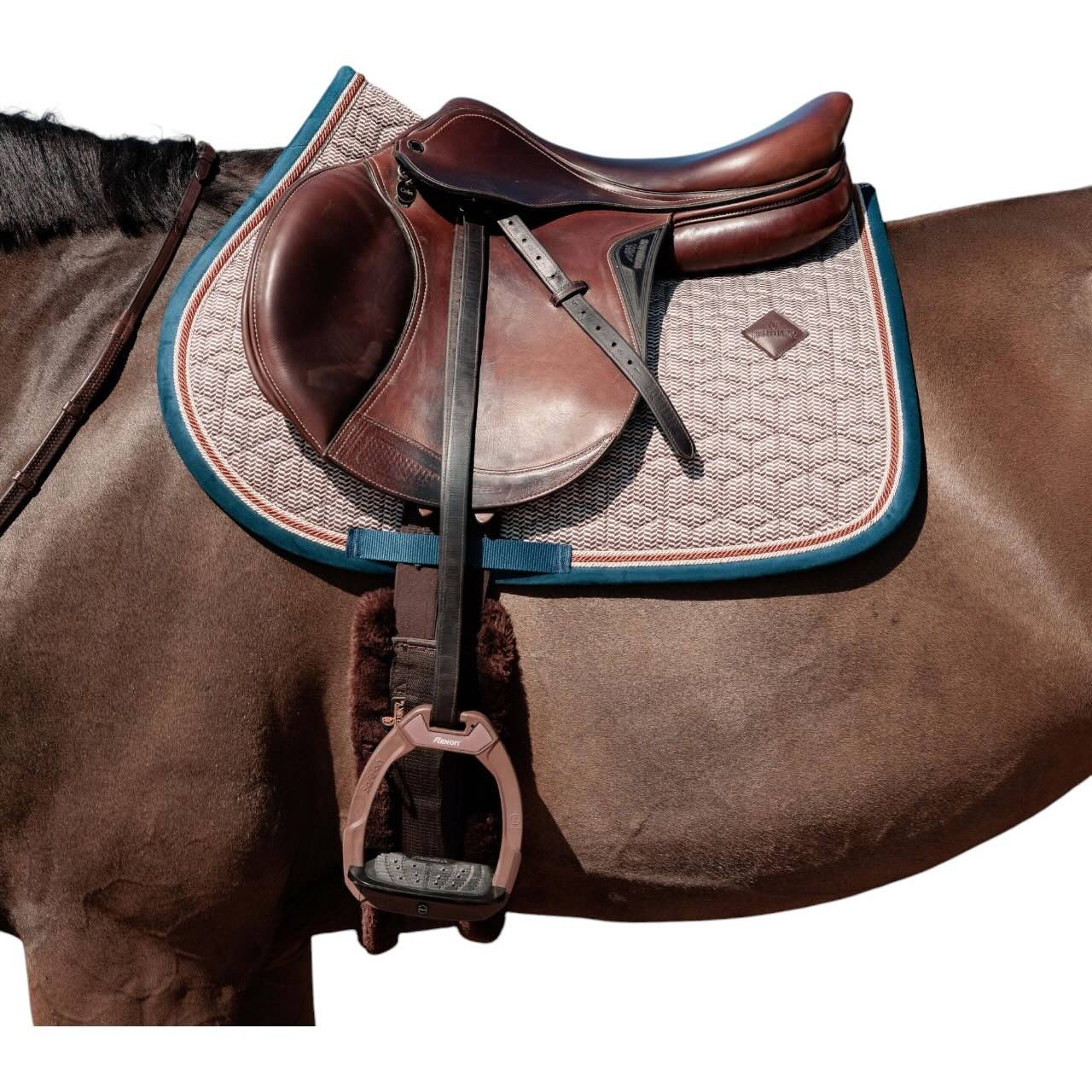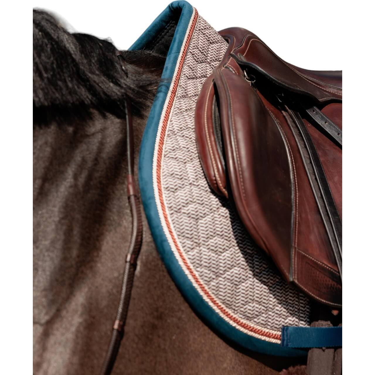 Kentucky Horsewear kombiniert mit der Springschabracke Pied de Poule zeitlosen Stil mit funktionaler Raffinesse. Diese exklusive Schabracke ist mehr als ein optisches Highlight – sie bietet deinem Pferd Komfort auf höchstem Niveau und setzt elegante Akzente im Reitalltag.