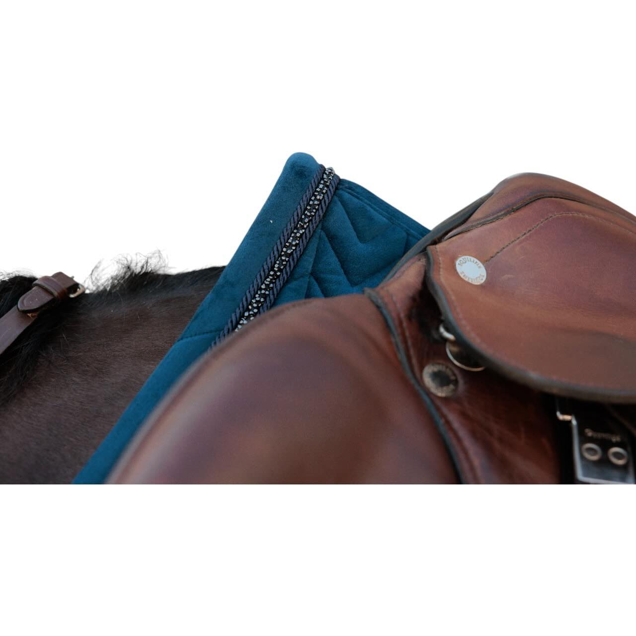 Die Kentucky Horsewear Schabracke Springschabracke Velvet Mini Pearls vereint edles Design mit funktionalen Eigenschaften. Luxuriöser Samt, dezente Perlen und ein atmungsaktives Innenfutter machen sie zu einer eleganten und praktischen Wahl für stilbewusste Reiter.