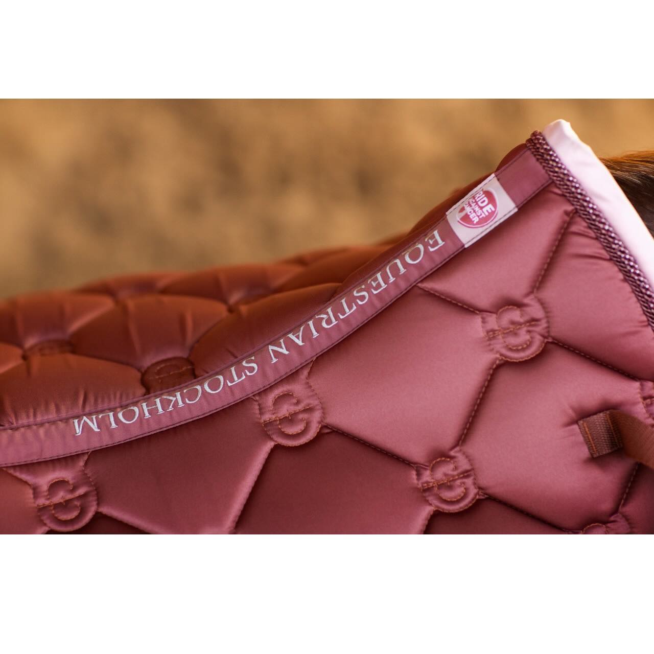 Die Equestrian Stockholm Springschabracke Amber Rose Schabracke vereint stilvolles Design mit durchdachter Funktionalität. In edlem Amber-Rot mit hellrosa Einfassung und silbernen Akzenten sorgt sie nicht nur für einen eleganten Auftritt, sondern bietet deinem Pferd auch höchsten Komfort.