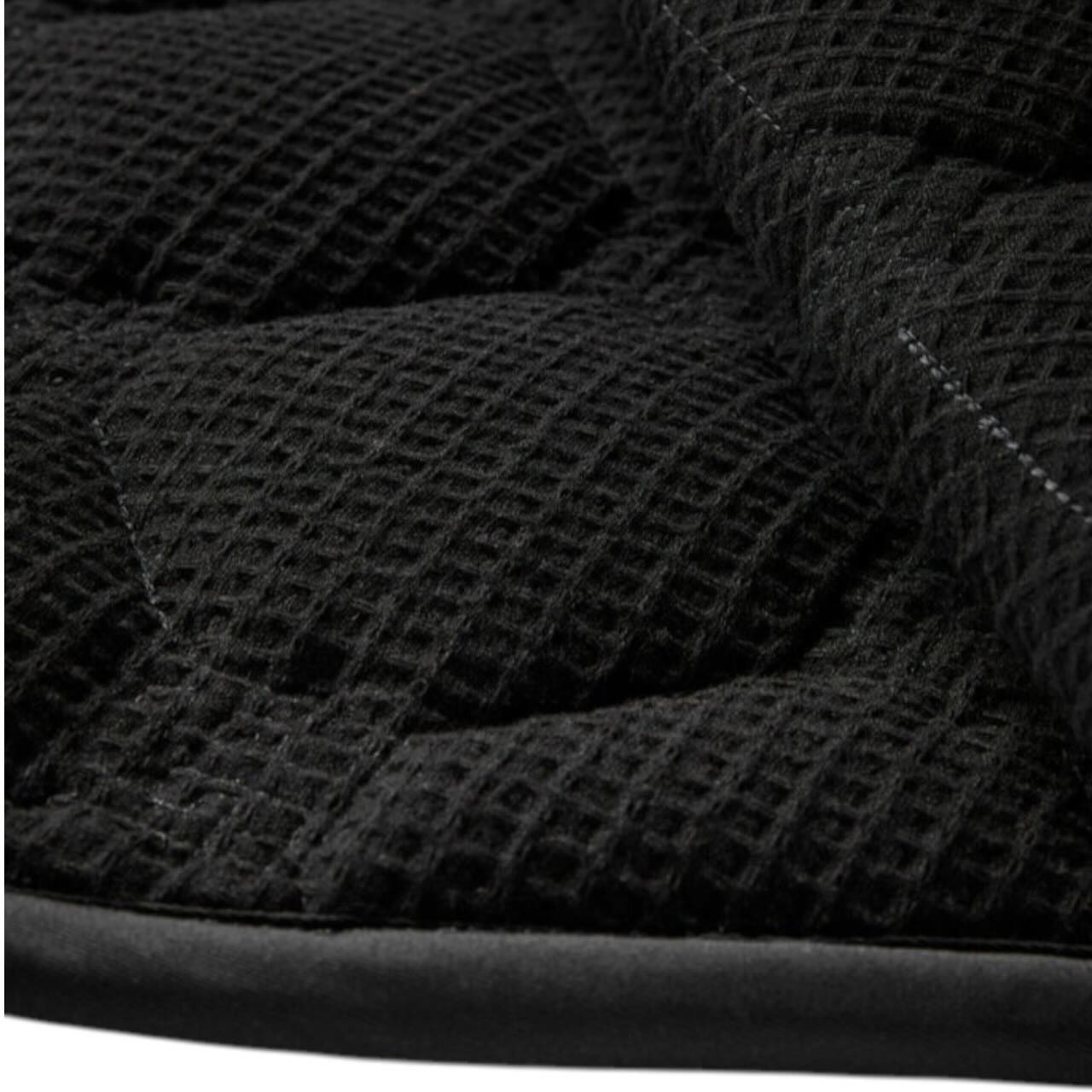 Das funktionale Waffelstruktur-Futter unterstützt eine effektive Luftzirkulation unter dem Sattel. Dadurch wird Feuchtigkeit zuverlässig vom Pferderücken abtransportiert. Dein Pferd profitiert von einem angenehmen Klima auch bei intensiven Trainingseinheiten. Die Kombination aus Polyester und Baumwolle sorgt für Strapazierfähigkeit und angenehme Haptik. Eine leichte Polyesterfüllung unterstützt die Druckverteilung unter dem Sattel. So bleibt der Rücken deines Pferdes optimal geschützt.