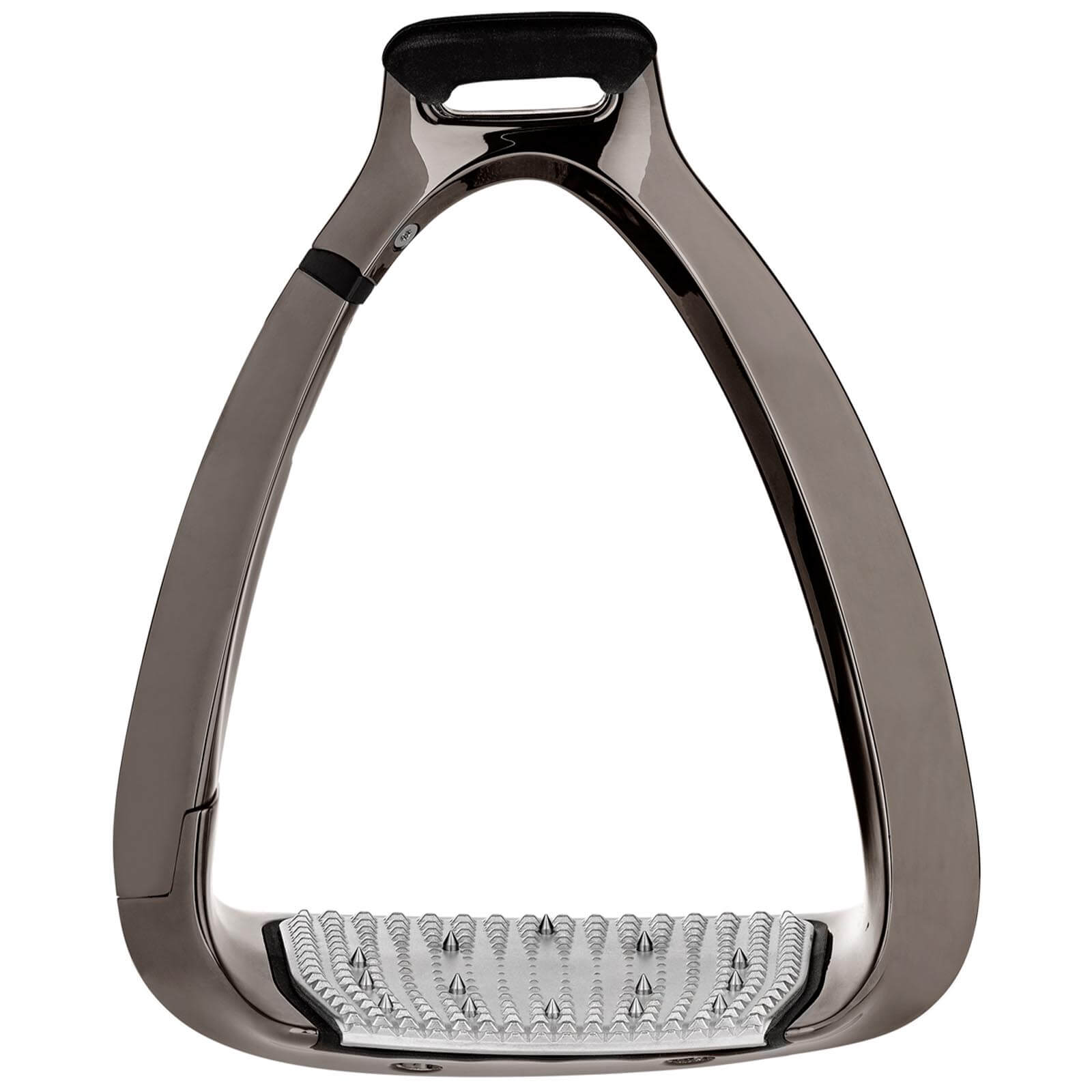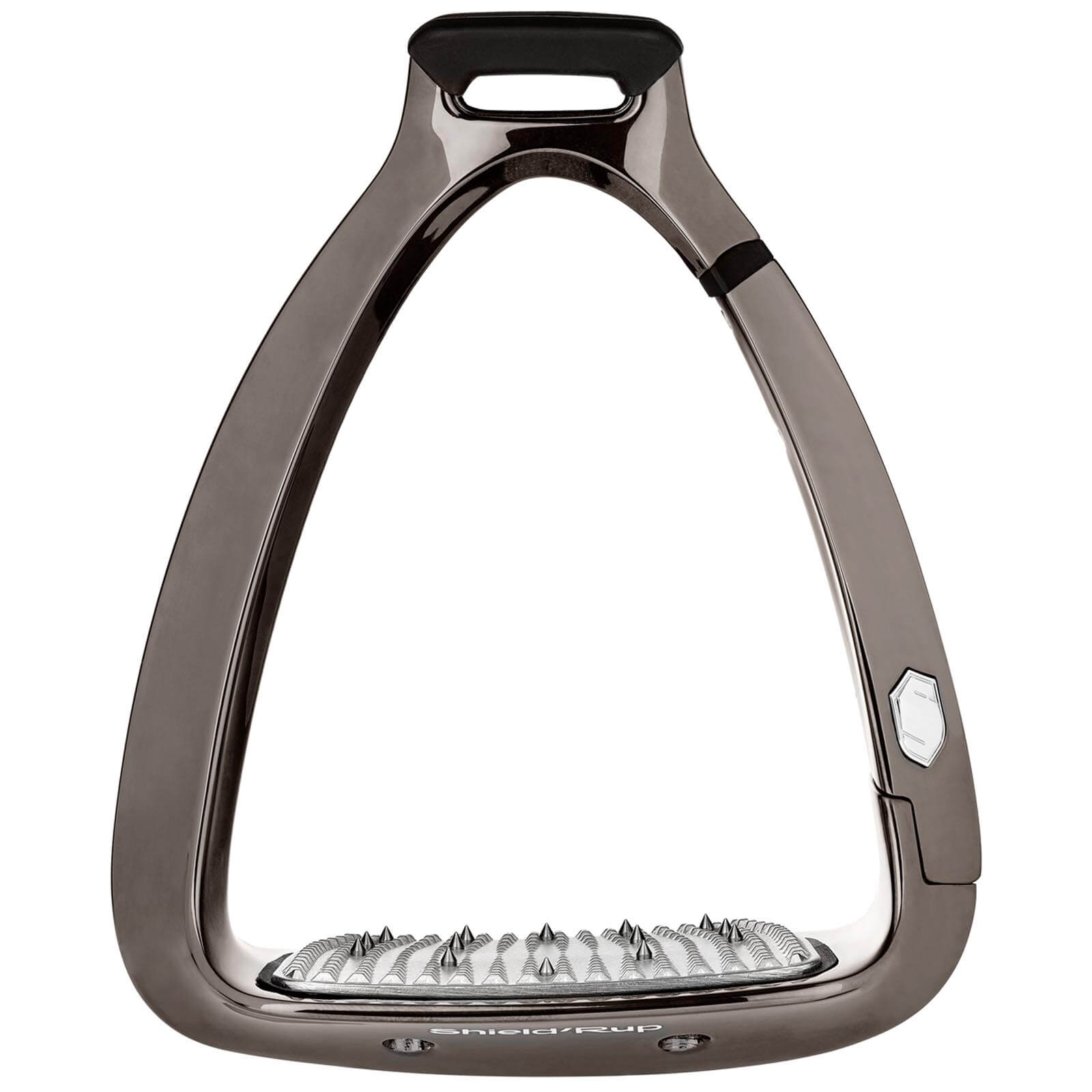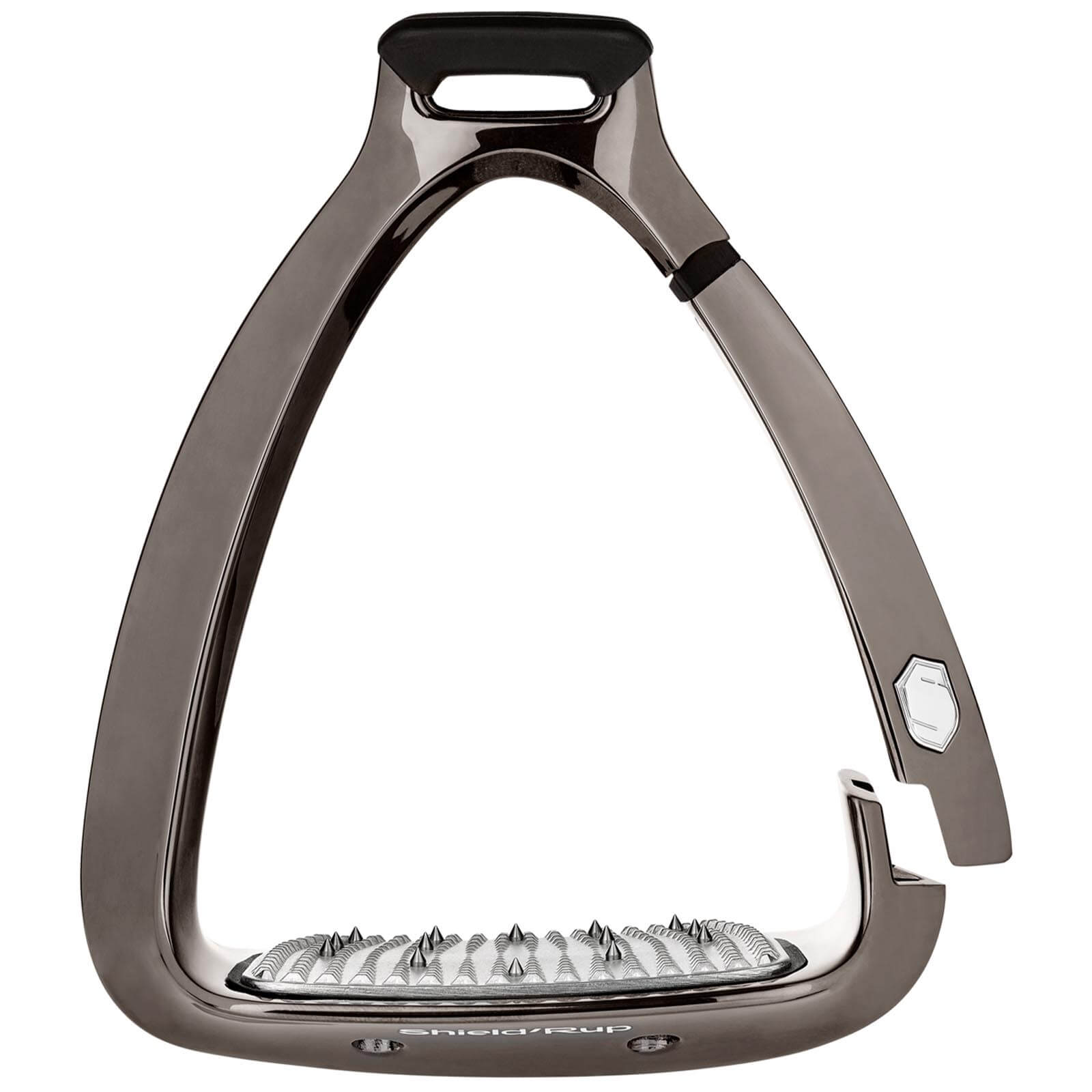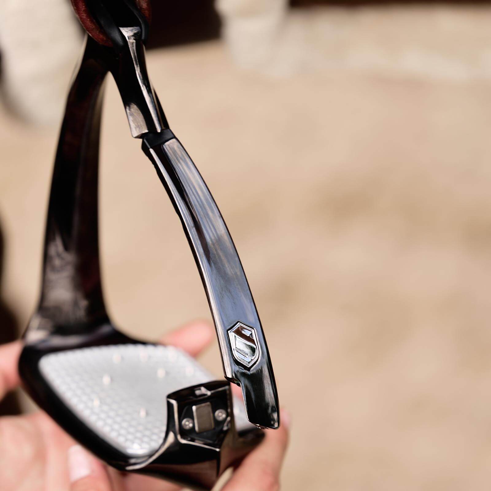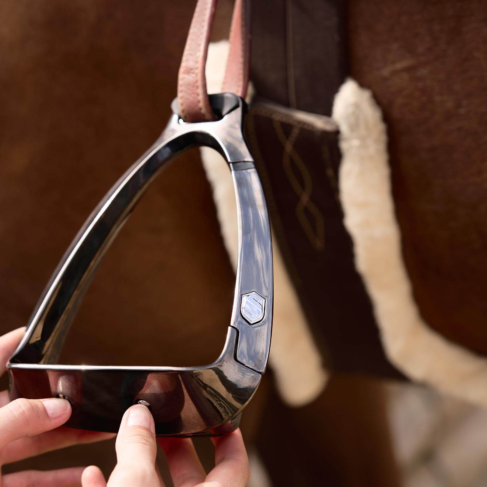 Die Steigbügel Shield'Rup sind in verschiedenen edlen Farbvarianten erhältlich, darunter Brushed Champagner und Black Chrome, die jedem Reitoutfit eine stilvolle Note verleihen. Die abgewinkelte Plattform sorgt nicht nur für eine ästhetische Optik, sondern auch für eine optimale Bein- und Fersenposition, was dir maximalen Komfort und Kontrolle bietet.