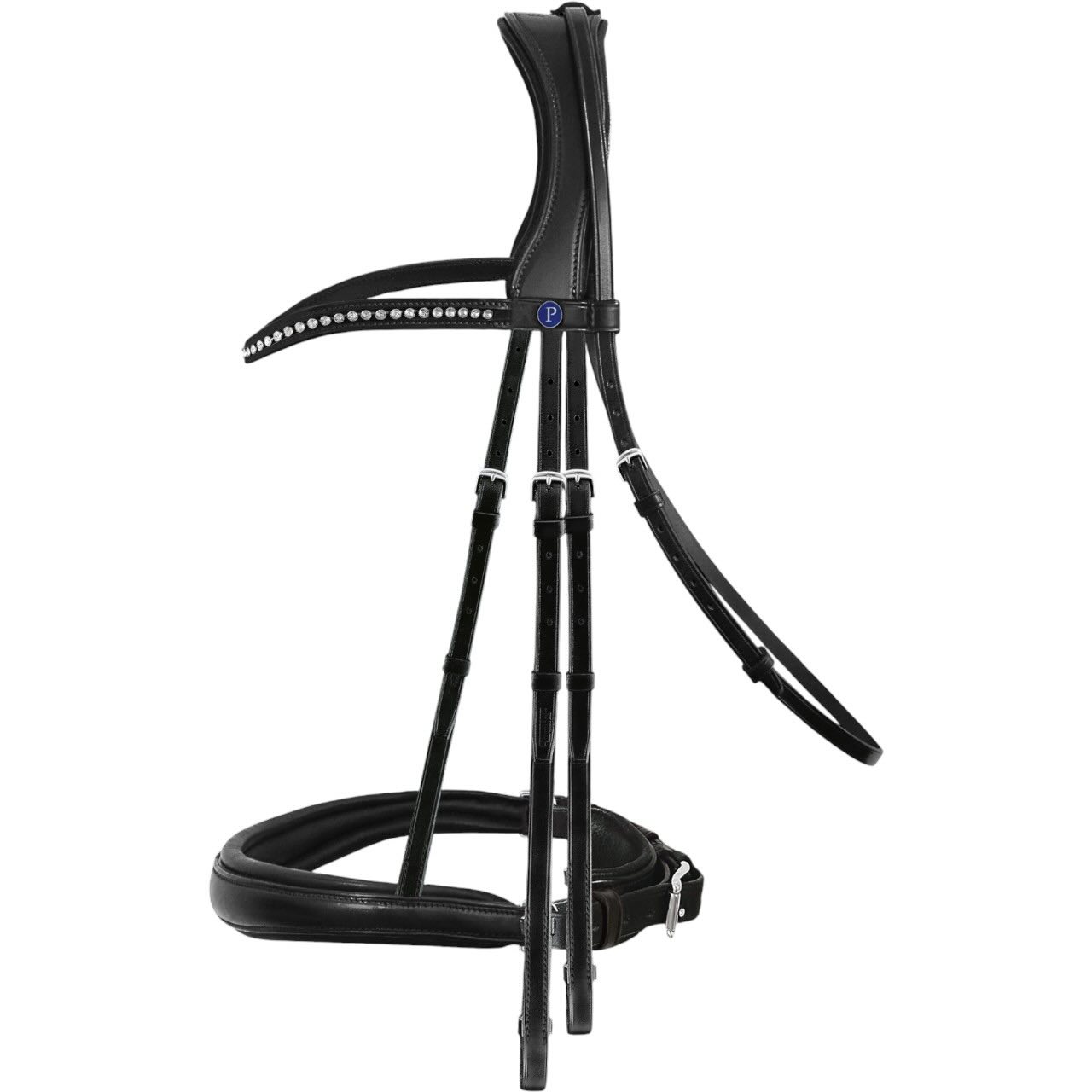 Die Kandare PASSIERBLU Dream Kandarenzaum beeindruckt mit ihrem geschwungenen Stirnriemen, der mit funkelnden Premium Crystals verziert ist. Diese Details, kombiniert mit den eleganten Beschlägen aus Edelstahl oder Messing, verleihen deinem Pferd eine unvergleichliche Eleganz – egal ob in der Reithalle oder auf Turnieren.
