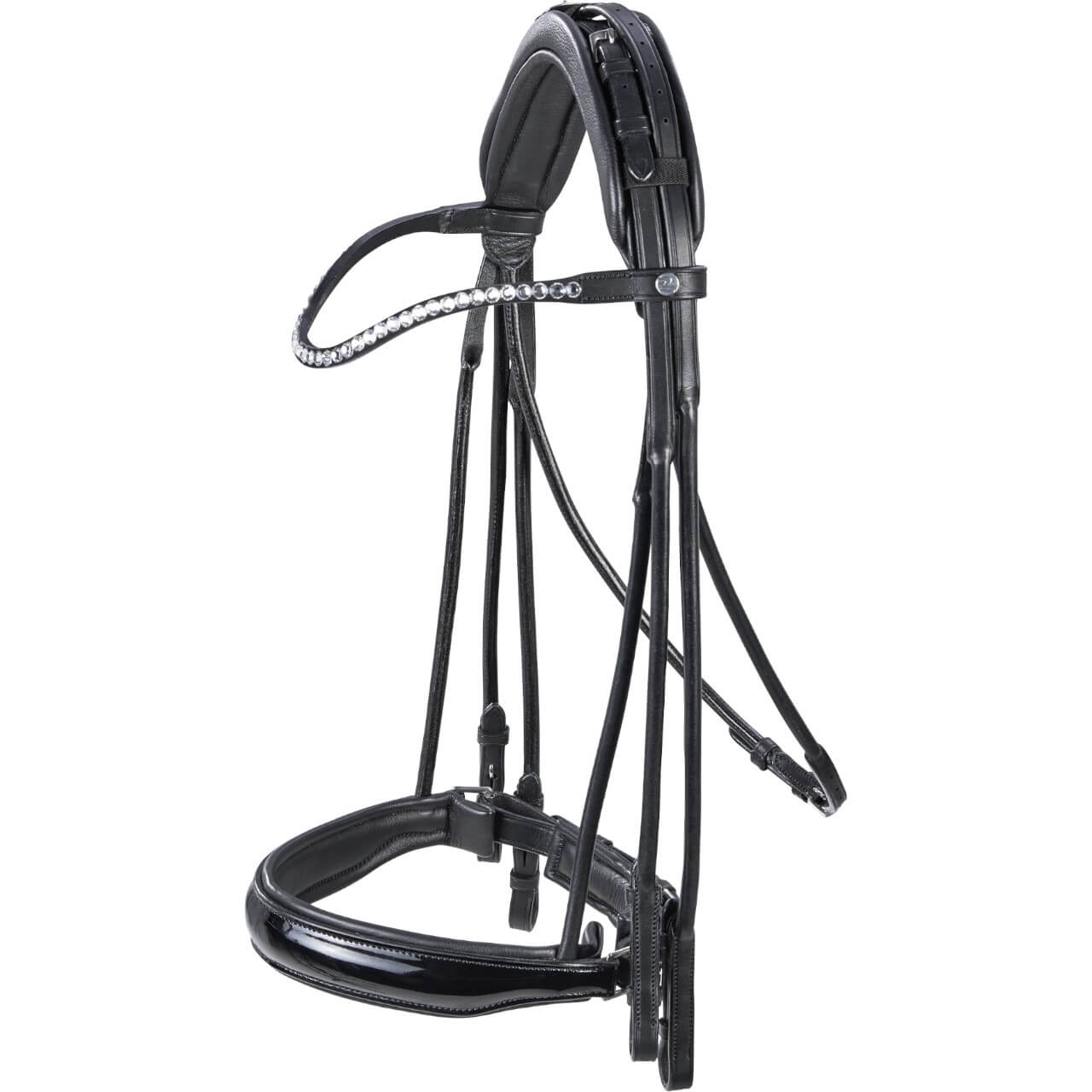 - Nasenriemen mit edler Lackleder-Oberfläche für einen klassischen Dressurlook