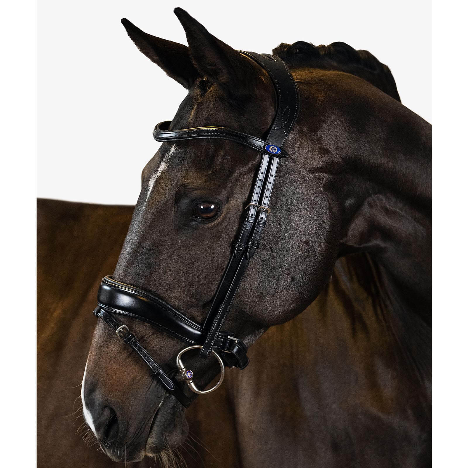 Der Nasenriemen Flying Change besticht durch sein breites, anatomisches Design, das sich harmonisch an den Kopf deines Pferdes anpasst. Die weiche Polsterung und die leichten Aushöhlungen an den Wangenknochen sorgen für einen eleganten Look und verhindern gleichzeitig Druck auf die Backenzähne. Das hochwertige pflanzlich gegerbte Leder verleiht dem Reithalfter einen zeitlosen Charme und garantiert eine lange Lebensdauer.