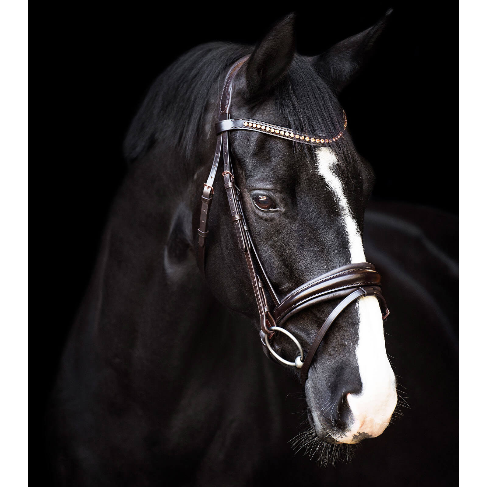 Der Trensenzaum IRHFria besticht durch seine edle Optik, die durch den mit Strasssteinen besetzten Stirnriemen akzentuiert wird. Die verschiedenen Farbvarianten, darunter klassisches Schwarz, elegantes Braun und auffälliges Burgundy, ermöglichen es dir, den perfekten Look für dein Pferd zu wählen. Die visuelle Anziehungskraft wird durch die hochwertige Verarbeitung und das feine Schafsleder unterstrichen.