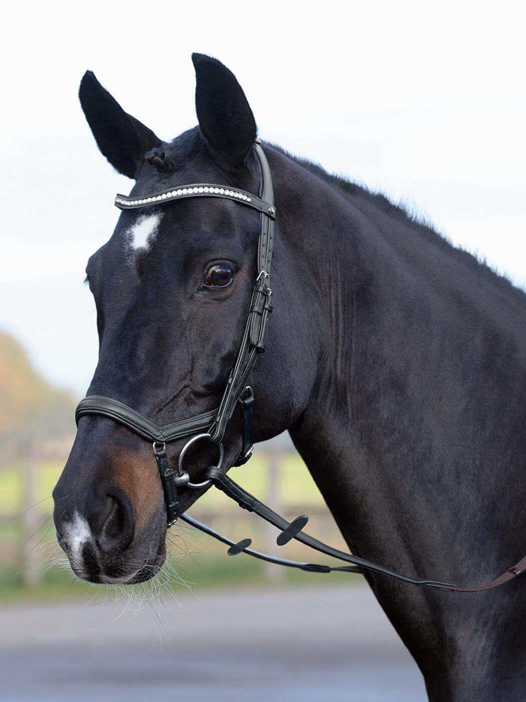 Die Trense Emotion Reithalfter Trensenzaum mit Zügel überzeugt durch ihr edles Erscheinungsbild in Braun oder Schwarz, verziert mit funkelnden Kristallen. Das anatomische Design sorgt für eine ruhige Positionierung des Gebisses und ermöglicht eine präzise und sanfte Hilfengebung. Durch die Verwendung von hochwertigem Softleder mit Nyloneinlage ist die Trense besonders anschmiegsam und leichtgewichtig.