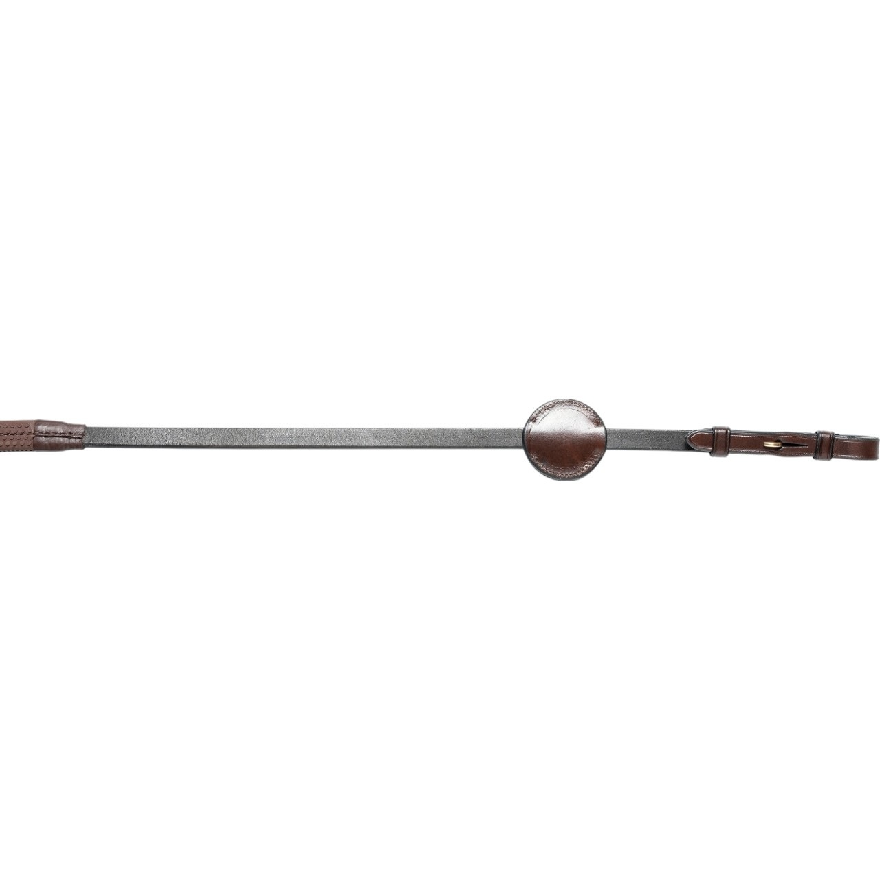 Die Gummizügel Maastricht bieten durch ihre rutschfeste Gummi-Innenseite zuverlässige Kontrolle auch bei Regen oder schwitzenden Händen. Die Außenseite ist mit hochwertigem Leder verarbeitet und vermittelt ein angenehmes Gefühl in der Hand. Sieben gleichmäßig verteilte, runde Zügelstopper sorgen für eine konstante Zügellänge und helfen dir dabei, eine gleichmäßige Verbindung zum Pferdemaul zu halten. Mit einer Breite von 13 mm (½ Inch) liegen die Zügel besonders leicht und fein in der Hand – ideal für präzise Hilfen. Das robuste Gummi unterstützt die Stabilität ohne dabei an Elastizität zu verlieren. Die Stege bieten zusätzlich visuelle und taktile Orientierung, was besonders in der Ausbildung hilfreich sein kann.