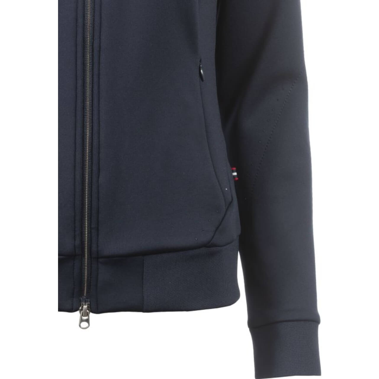 Die Cavalnoami FS 2025 besticht durch eine lässige Schnittführung mit Raglanärmeln und einer angeschnittenen Kapuze. Dezente Kristallsteine an Kapuze, Ärmeln und Brust verleihen der Jacke eine edle Optik, während der silberfarbene 2-Wege-Reißverschluss für Flexibilität sorgt. Genieße den sportlich-eleganten Look, der sowohl im Reitstall als auch in der Freizeit überzeugt.