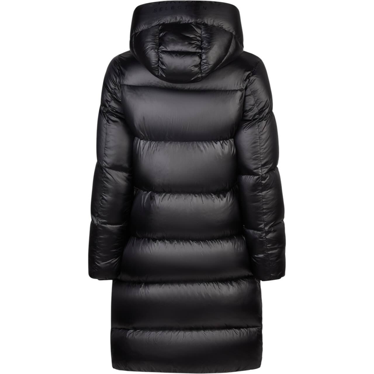 Dieser lange Steppmantel aus glänzender Nylonware überzeugt durch seine hochwertige Sorona Fibreball Füllung, die ein ausgezeichnetes Wärmerückhaltevermögen bietet. Das spezielle Graphene Heating Storage Futter im Rücken speichert Wärme effizient und sorgt für ein angenehmes Körperklima. Eine feste Kapuze schützt dich zuverlässig vor Wind und Wetter, während der taillierte Schnitt mit innenliegendem Saumgummi eine feminine Silhouette betont. Die seitlichen Reißverschlüsse bis zur Wade (102 cm bei Größe 38) bieten Bewegungsfreiheit, auch beim Reiten. Dank Softshell-Blenden an Front und Seitenreißverschlüssen wird der Mantel zusätzlich windabweisend.