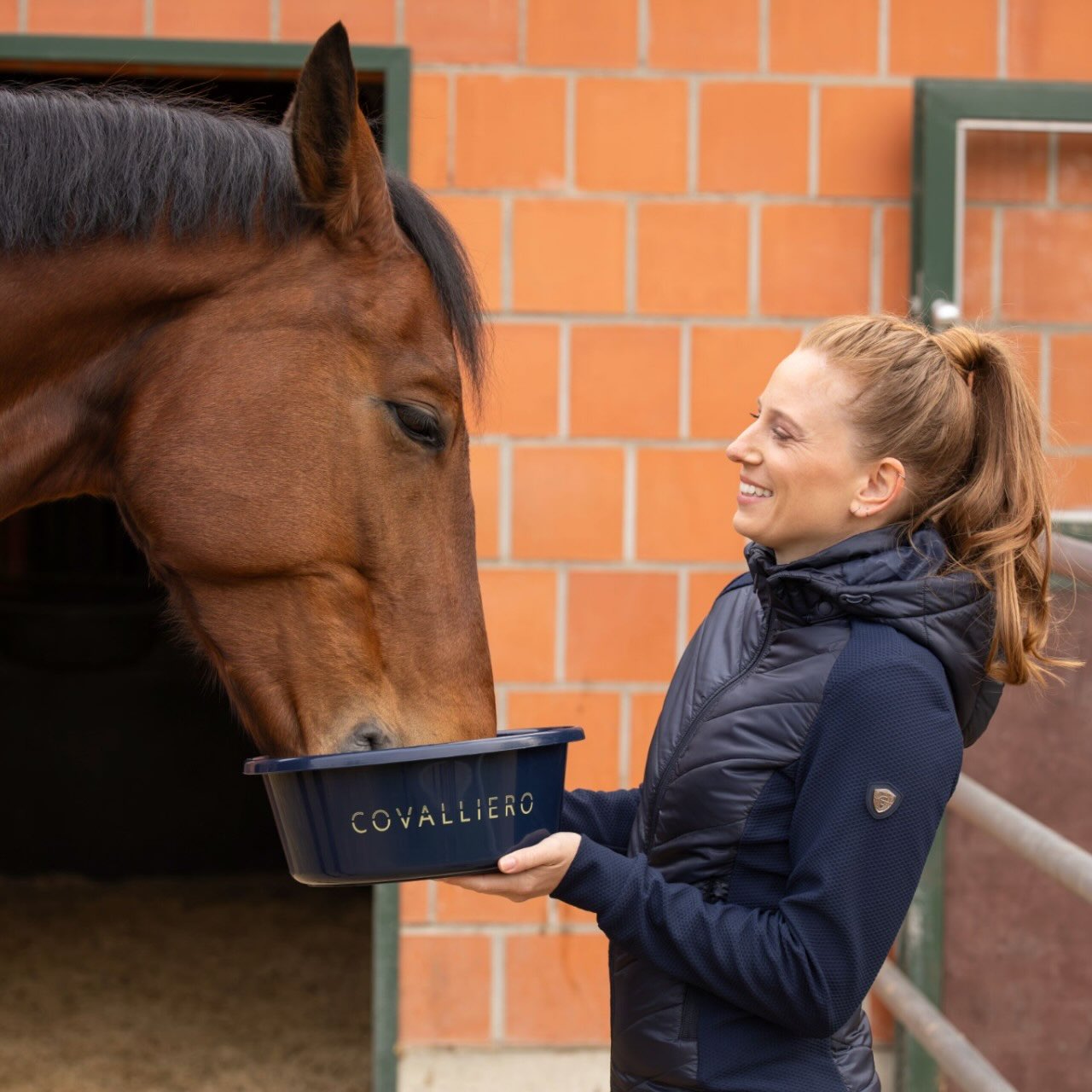 Die Jacke von Covalliero kombiniert unterschiedliche Materialien zu einem funktionalen Gesamtbild. Die gesteppte Front sorgt für angenehme Wärme an kühleren Tagen. Gleichzeitig bieten elastische Mesh-Einsätze an den Seiten hohe Atmungsaktivität. Dadurch entsteht ein ausgewogenes Körperklima bei Bewegung. Das Material unterstützt dich bei aktiven Einsätzen im Reitsport. So bleibt die Jacke auch bei wechselnden Bedingungen komfortabel.