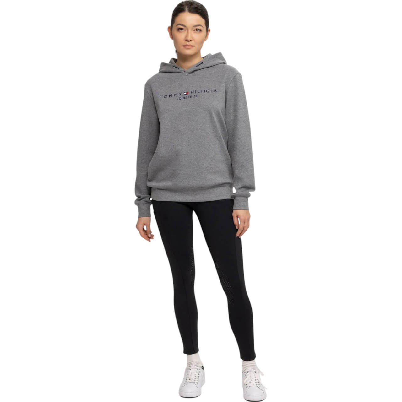 Mit einem Materialmix aus 60% Viscose, 35% Polyester und 5% Elastane bietet dieser Kapuzenpullover eine angenehme Elastizität und Atmungsaktivität. Der gerippte Bund und die bequemen Ärmel sorgen für optimalen Tragekomfort und Bewegungsfreiheit, egal ob beim Reiten oder in der Freizeit. Der Hoodie fällt normal aus, was eine präzise Passform garantiert.