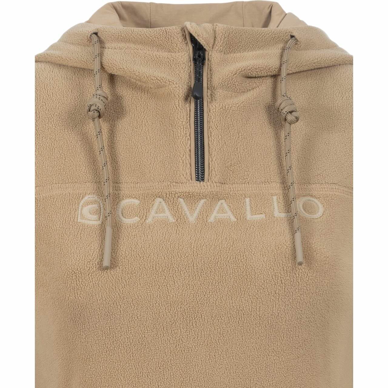 Gefertigt aus weichem, leichtem Microfleece sorgt der Cavallo Half-Zip-Pullover Cavalriga HW 2025 Zipper für ein angenehmes Tragegefühl und eignet sich ideal als Midlayer im Reitalltag. Die Kapuze ist mit einem tonigen Kordelzug mit kleinen Kontrasten ausgestattet und lässt sich per Druckknopf am Rücken fixieren – praktisch beim Reiten oder in Bewegung. Der kurze Reißverschluss am Kragen ermöglicht eine individuelle Belüftung und erleichtert das An- und Ausziehen. Saum und Ärmelabschlüsse bestehen aus Außenware, was den Tragekomfort zusätzlich erhöht. Der funktionale Schnitt bietet Bewegungsfreiheit ohne Kompromisse bei der Passform. So bleibst du flexibel und gut geschützt – auch bei wechselndem Wetter.