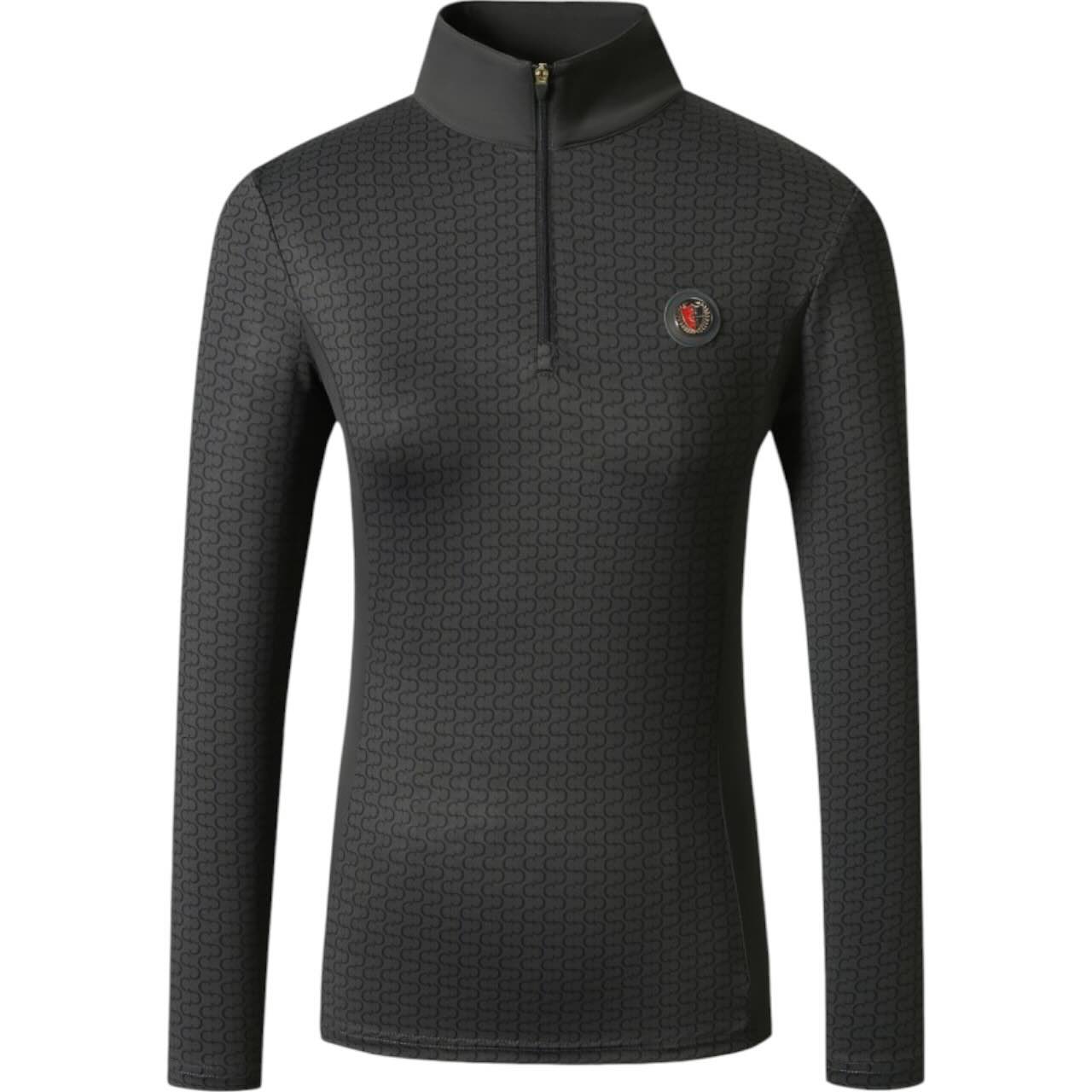 Das hochwertige Material des Shirts ist atmungsaktiv und leicht, sodass du auch bei intensiven Aktivitäten ein angenehmes Körperklima behältst. Die elastische Faserstruktur sorgt für eine ausgezeichnete Passform, die jede Bewegung mitmacht. Ob beim Reiten, Longieren oder bei der Stallarbeit – du profitierst stets von einem bequemen Sitz und optimaler Bewegungsfreiheit. Der funktionale Half-Zip rundet das moderne Design ab und macht das Shirt zum vielseitigen Begleiter in deinem Reitalltag.