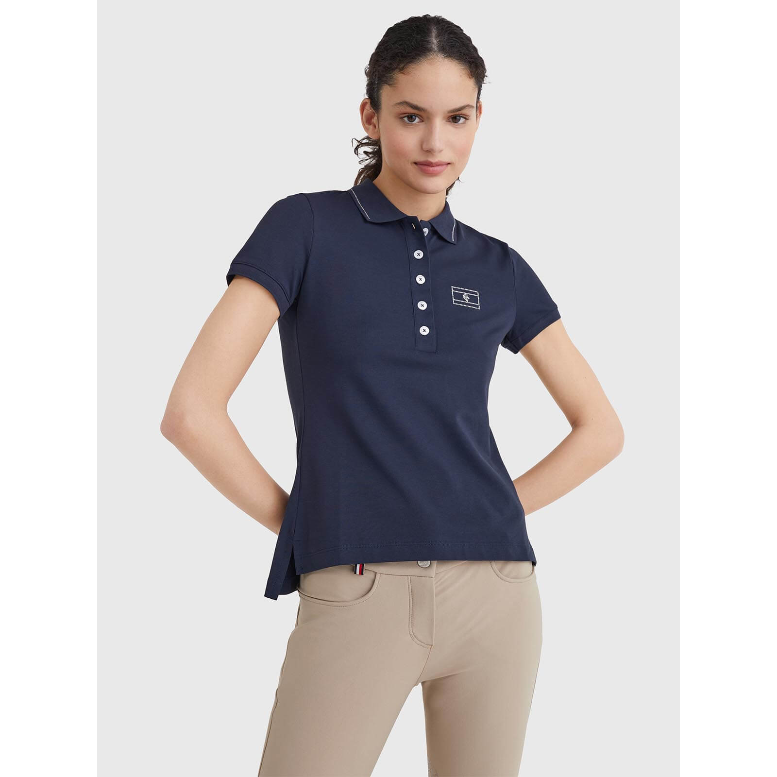 Poloshirt Damen Crystal Embellished Style FS 2022 von Tommy Hilfiger Equestrian ist die perfekte Kombination aus stilvoller Eleganz und praktischer Funktionalität. Mit edlen Strassstein-Details und einer komfortablen Passform bietet dieses Poloshirt nicht nur optische Highlights, sondern auch höchsten Tragekomfort für jeden Anlass.