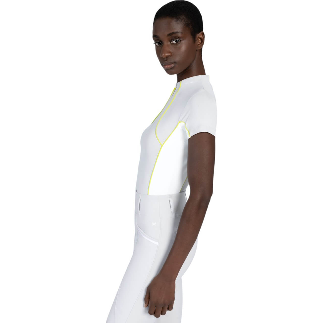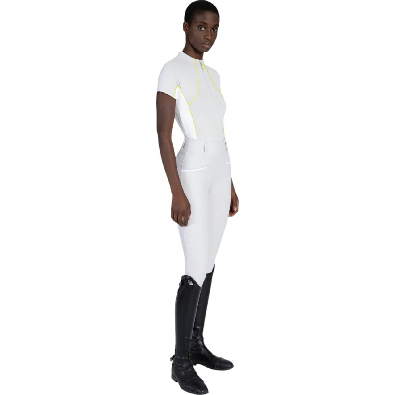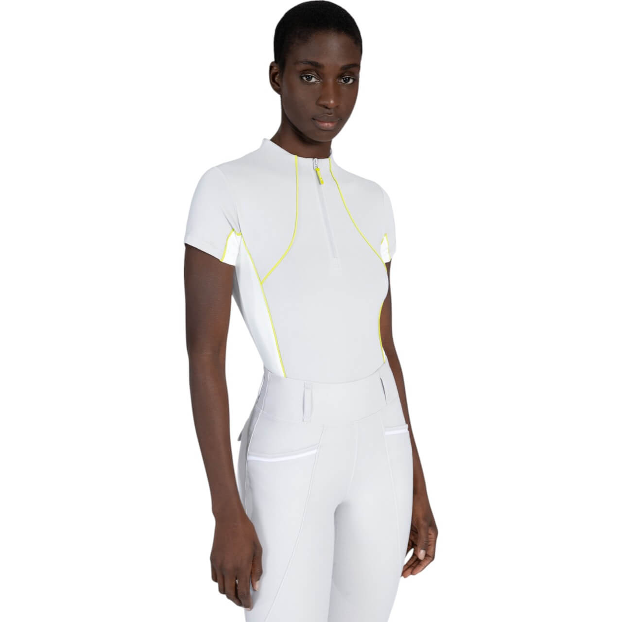 Die feminine Passform wird durch geschwungene Kontrasteinsätze und Paspeln betont, die für einen modernen Look sorgen. Das Shirt bietet einen hohen UV-Schutz (50+ UPF), um dich auch an sonnigen Tagen optimal zu schützen. Es lässt sich perfekt mit dem Crew Glacier/Lime Pferdeset kombinieren und rundet dein Reitoutfit stilvoll ab.