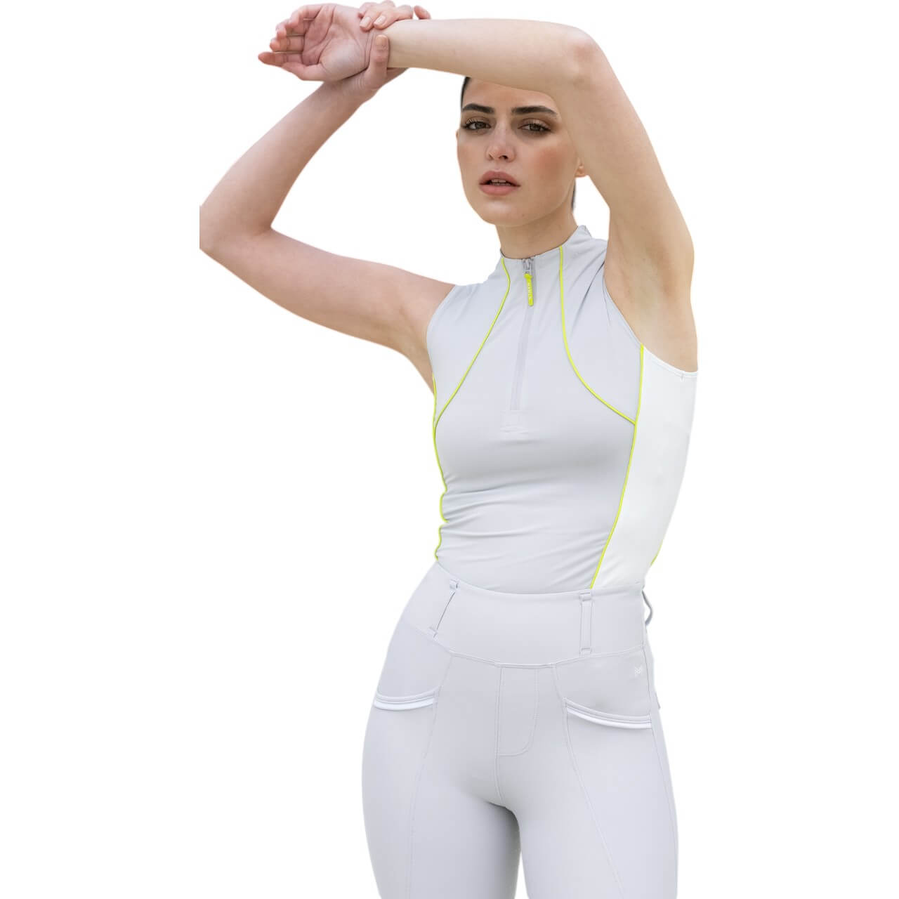 Maximilian Equestrian präsentiert das Top Damen Sleeveless Contrast Baselayer – dein idealer Begleiter für warme Reittage. Mit seinem ultraleichten, kühlenden Material sorgt es für optimalen Tragekomfort, während der feminine Schnitt und kontrastreiche Details einen stilvollen Look garantieren.