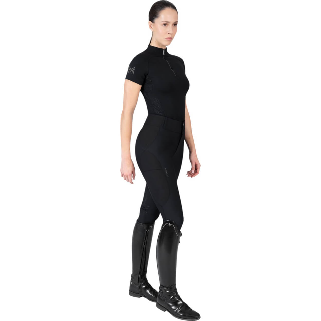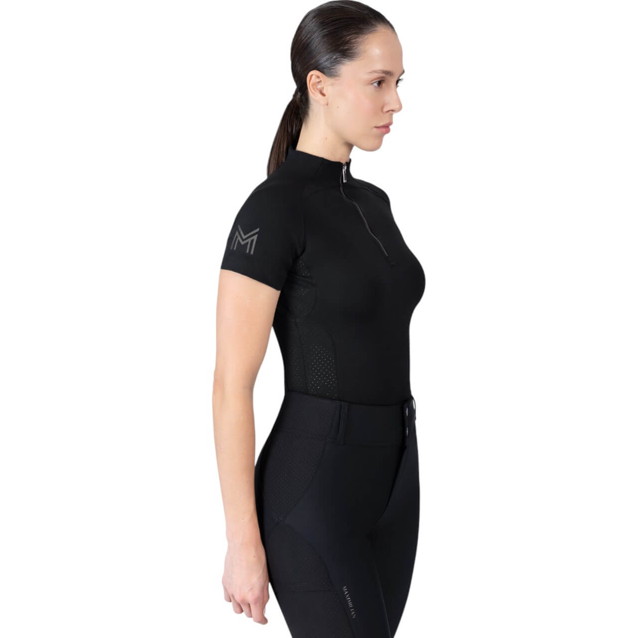 Maximilian Equestrian präsentiert mit dem Funktionsshirt Damen Kurzarm Aero Base Layer ein innovatives Reitshirt für anspruchsvolle Reiterinnen. Das moderne Design trifft auf höchste Funktionalität – perfekt für warme Trainingstage und einen stilvollen Auftritt im Sattel.