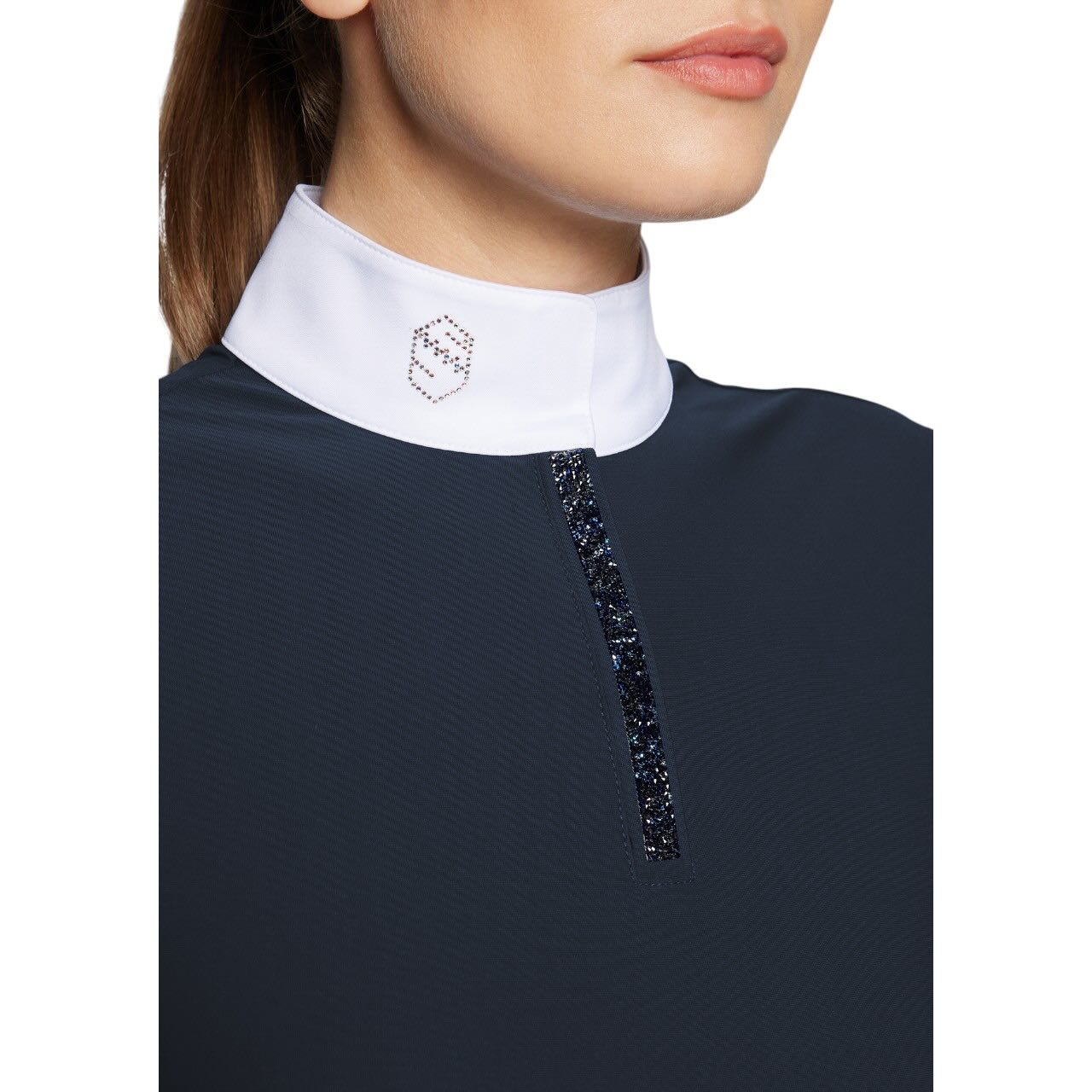 Durchdachte Details machen dieses Reitshirt besonders komfortabel im Alltag. Der nahezu unsichtbare Halb-Reißverschluss sorgt für ein cleanes, modernes Erscheinungsbild. Feine Ultrafine-Rocks-Verzierungen verleihen dem Zipper eine dezente luxuriöse Note. Die magnetische Kragenverschlusslösung ermöglicht ein schnelles und unkompliziertes Öffnen und Schließen. Gleichzeitig bleibt der Kragen stets sauber und elegant in Form. Diese Kombination aus Technik und Design erfüllt die hohen Ansprüche moderner Reiterinnen. Damit wird das Shirt zu einem funktionellen Begleiter für anspruchsvolles Training.