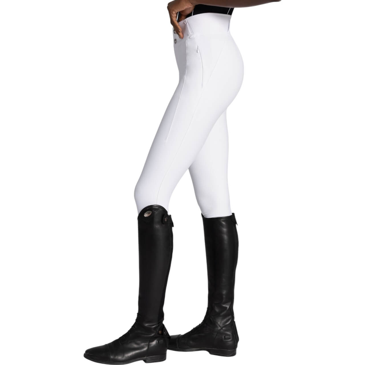 Die Vision Competition Collection Reitleggings kombiniert den Komfort einer Leggings mit der Leistungsfähigkeit einer klassischen Reithose. Dank des ergonomischen Designs passt sie sich deinen Bewegungen perfekt an und bietet dir absolute Bewegungsfreiheit. Der hoch geschnittene, breite Bund sorgt für optimalen Halt und eine schmeichelhafte Silhouette. Das atmungsaktive Material leitet Feuchtigkeit zuverlässig ab und trocknet schnell – ideal für intensive Trainingseinheiten oder lange Tage im Stall.