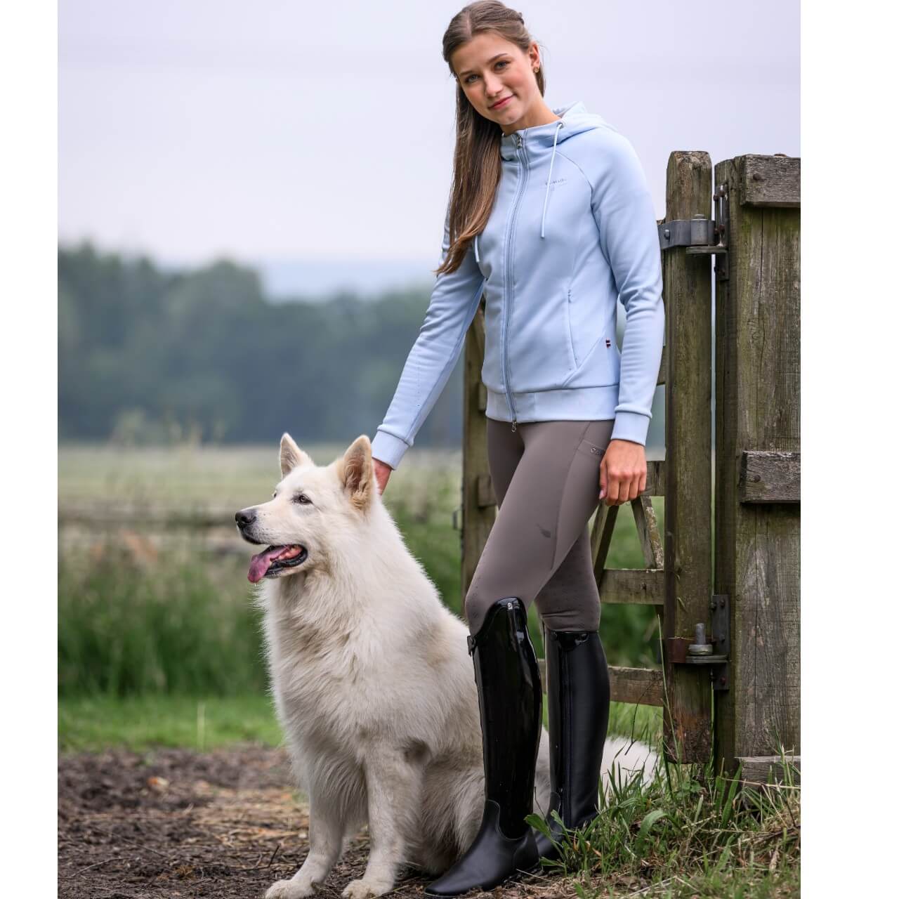 Die Cavalcandera FS 2025 beeindruckt durch ihre moderne Optik in der Farbe Mud Taupe, die sich vielseitig kombinieren lässt. Elegante Strassapplikationen und eine raffinierte Rückenpasse verleihen der Reithose eine luxuriöse Note. Der breite, elastische Bund mit Gürtelschlaufen sorgt nicht nur für einen perfekten Sitz, sondern auch für zusätzlichen Komfort und Stil.