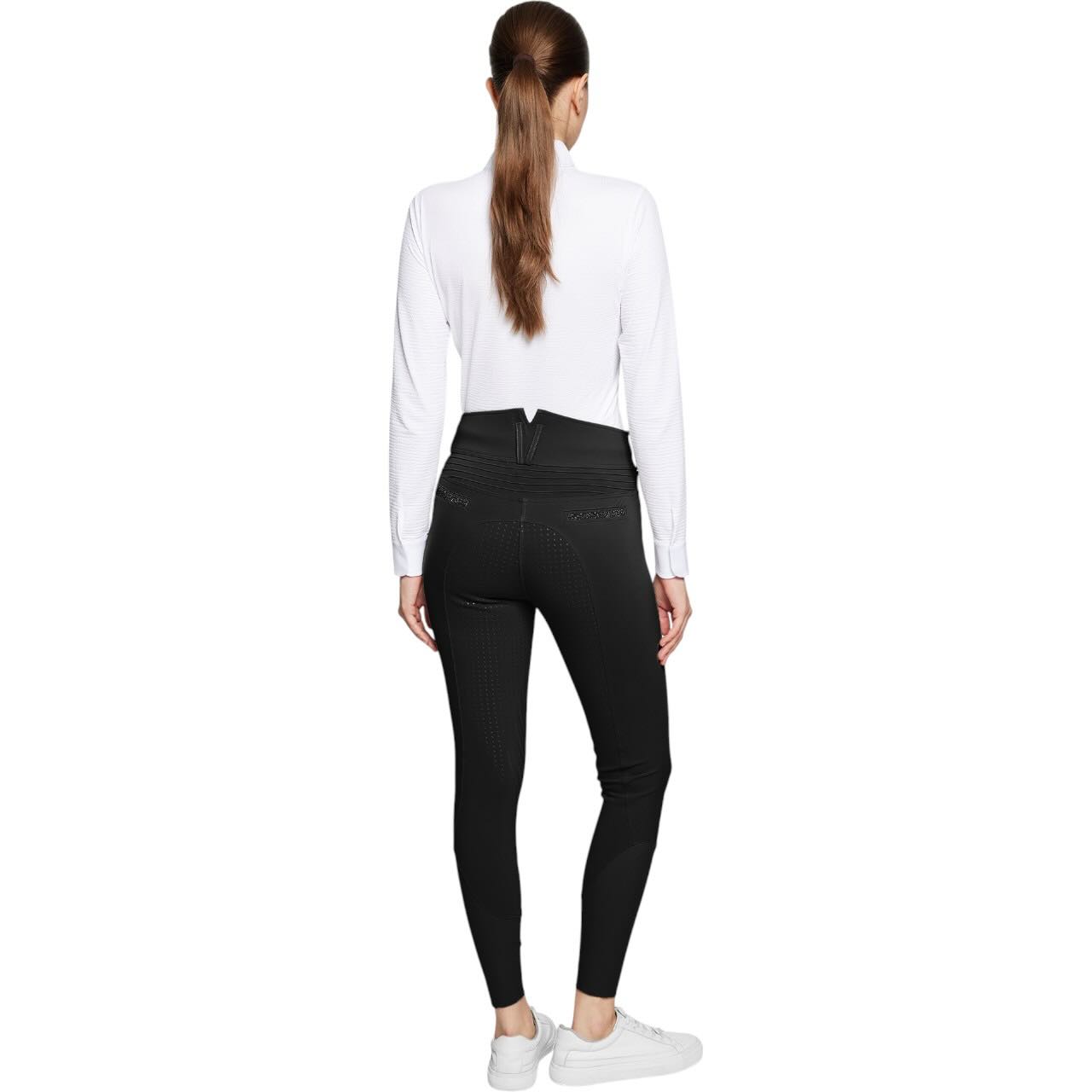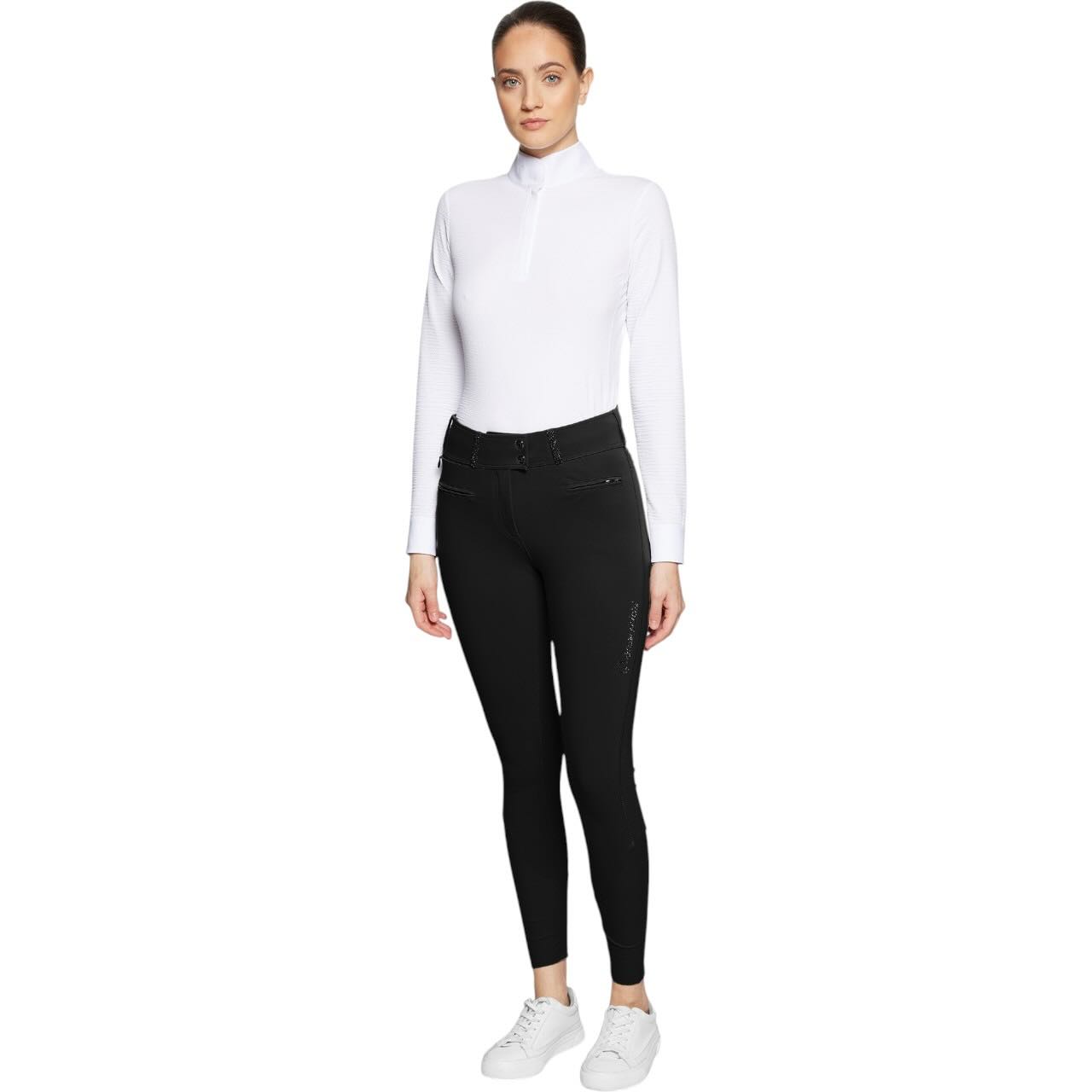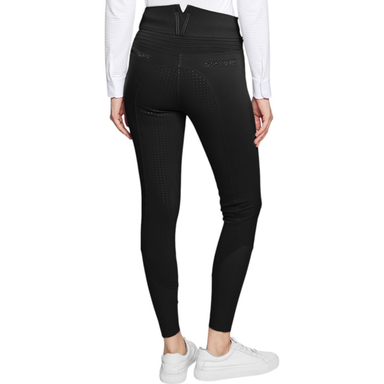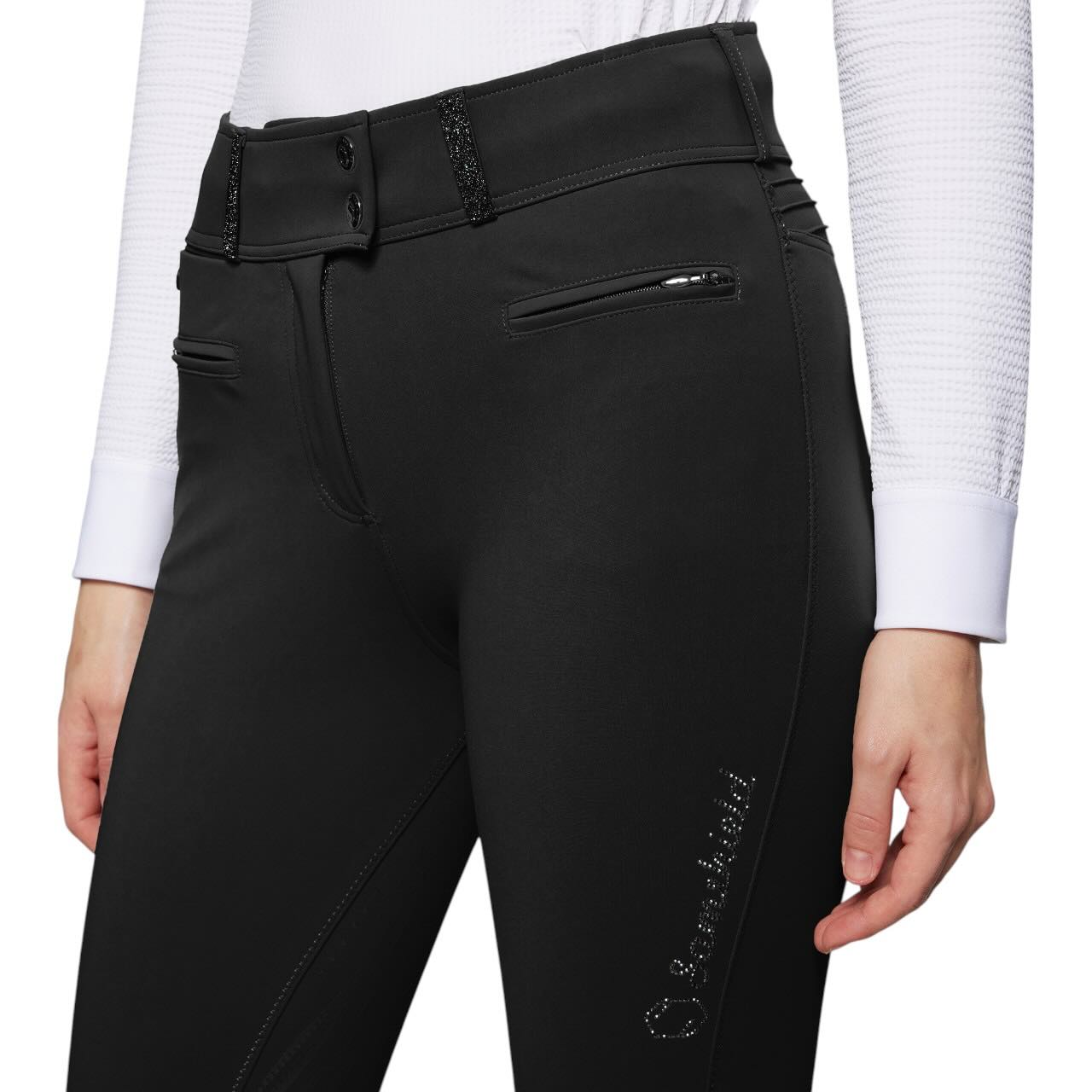 Die Claranova setzt neue Maßstäbe im Reitsport, wenn es um Funktion und Design geht. Dank des extra hohen Bunds bietet sie optimalen Halt und eine schmeichelnde Passform. Swarovski®-Details auf Oberschenkel, Gürtelschlaufen und Gesäßtaschen verleihen einen exklusiven Look. Zwei Fronttaschen mit Reißverschluss sowie eine praktische Handytasche sorgen für durchdachte Funktionalität. Auch die Rückseite überzeugt mit zwei Taschen, die das Gesamtbild elegant abrunden. So wird die Reithose zum Hingucker im Alltag wie auch auf Turnieren.