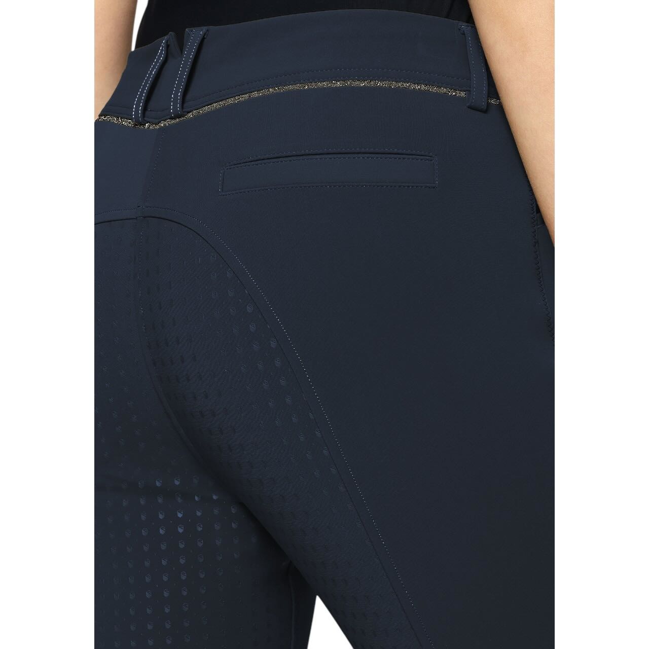 Gefertigt aus hochwertigem italienischem Funktionsmaterial überzeugt die Reithose mit atmungsaktiven und elastischen Eigenschaften. Das Gewebe passt sich deinen Bewegungen flexibel an und bleibt auch bei intensiven Trainingseinheiten angenehm leicht. Gleichzeitig ist der Stoff knitterarm und resistent gegen Pilling, sodass die Reithose lange gepflegt aussieht. Der integrierte UV-Schutz UPF 50+ schützt deine Haut bei sonnigen Ausritten und Trainingseinheiten im Freien. Am Beinabschluss sorgt ein perforiertes Kompressionsmaterial für eine optimale Passform unter Reitstiefeln oder Chaps. Dadurch entsteht ein besonders angenehmes Tragegefühl – sowohl im Sattel als auch im Stallalltag.