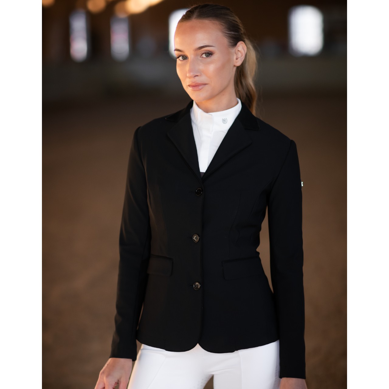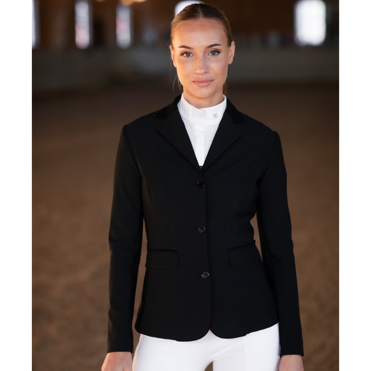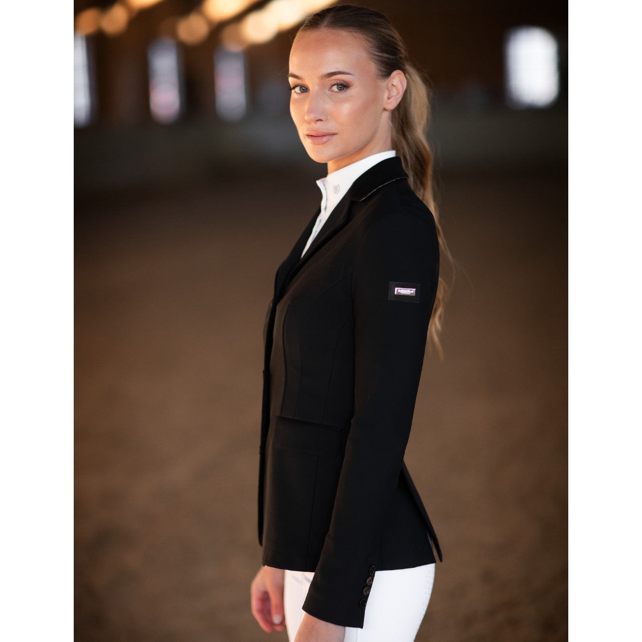 Das Turnierjacket Damen Classic Black Sakko von Equestrian Stockholm vereint stilvolles Design mit praktischen Eigenschaften für den Reitsport. Diese Showjacke punktet mit einem klassischen Schnitt, hochwertigen Materialien und dezenten, glamourösen Akzenten. Ob Regen oder Sonnenschein – mit diesem Sakko bleibst du fokussiert auf deinen Ritt. Genieße optimale Bewegungsfreiheit dank innovativem Stretch und zeige dich auf jedem Turnier von deiner besten Seite. Komfort, Stil und Funktionalität verschmelzen hier zu einem professionellen Gesamtpaket. Ideal für Reiterinnen, die höchsten Ansprüchen gerecht werden möchten.