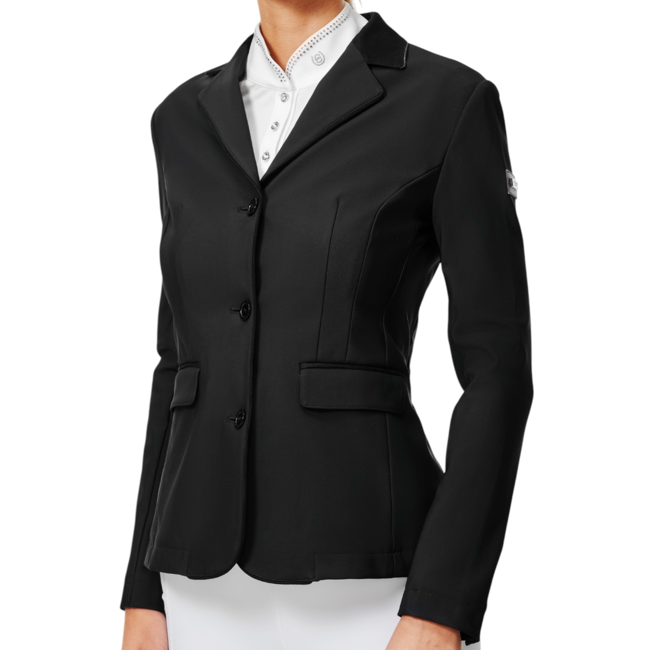 Das Classic Black Sakko überzeugt durch sein schweres, hochwertiges 4-Wege-Stretch-Material, das dir maximale Bewegungsfreiheit bietet – selbst bei anspruchsvollen Prüfungen. Die körpernah geschnittenen, formgebenden Nähte unterstreichen deine Figur und sorgen für einen professionellen Look im Sattel. Dabei sitzt die Jacke bequem und passt sich jeder Bewegung an, ohne einzuengen. Auch lange Turniertage sind mit diesem Sakko kein Problem – der Tragekomfort bleibt konstant hoch. Die durchdachte Verarbeitung verleiht dir Selbstsicherheit und unterstreicht deinen Auftritt. Damit bist du bestens gewappnet für sportliche Herausforderungen.