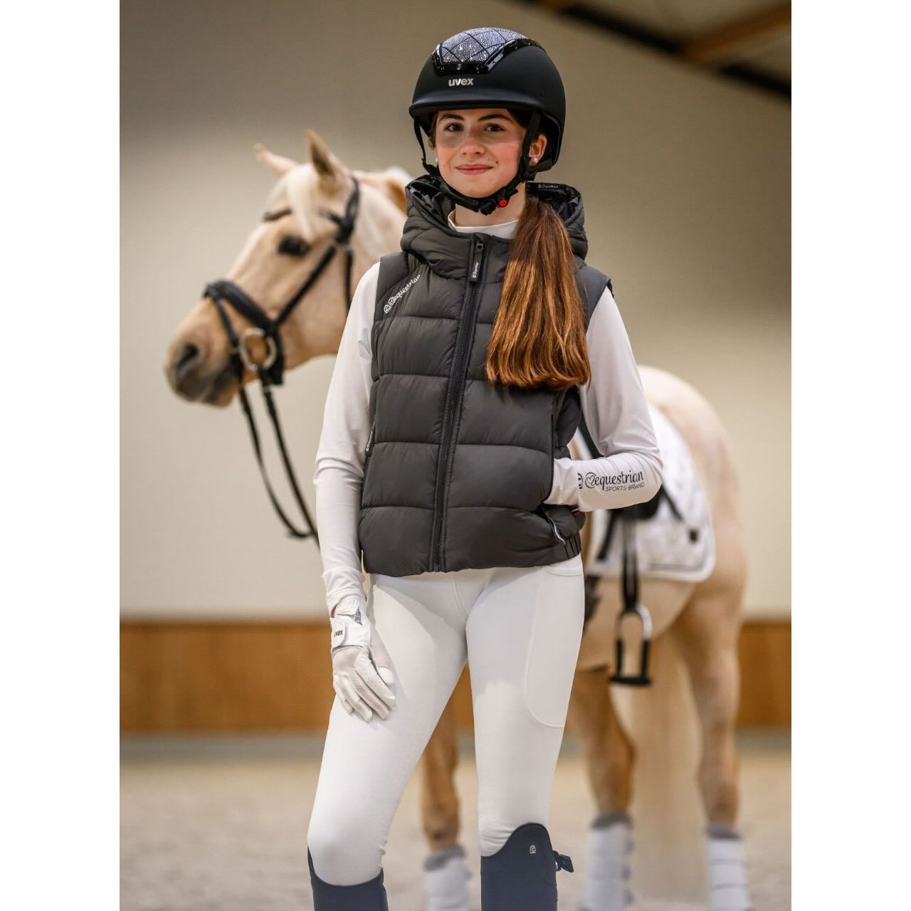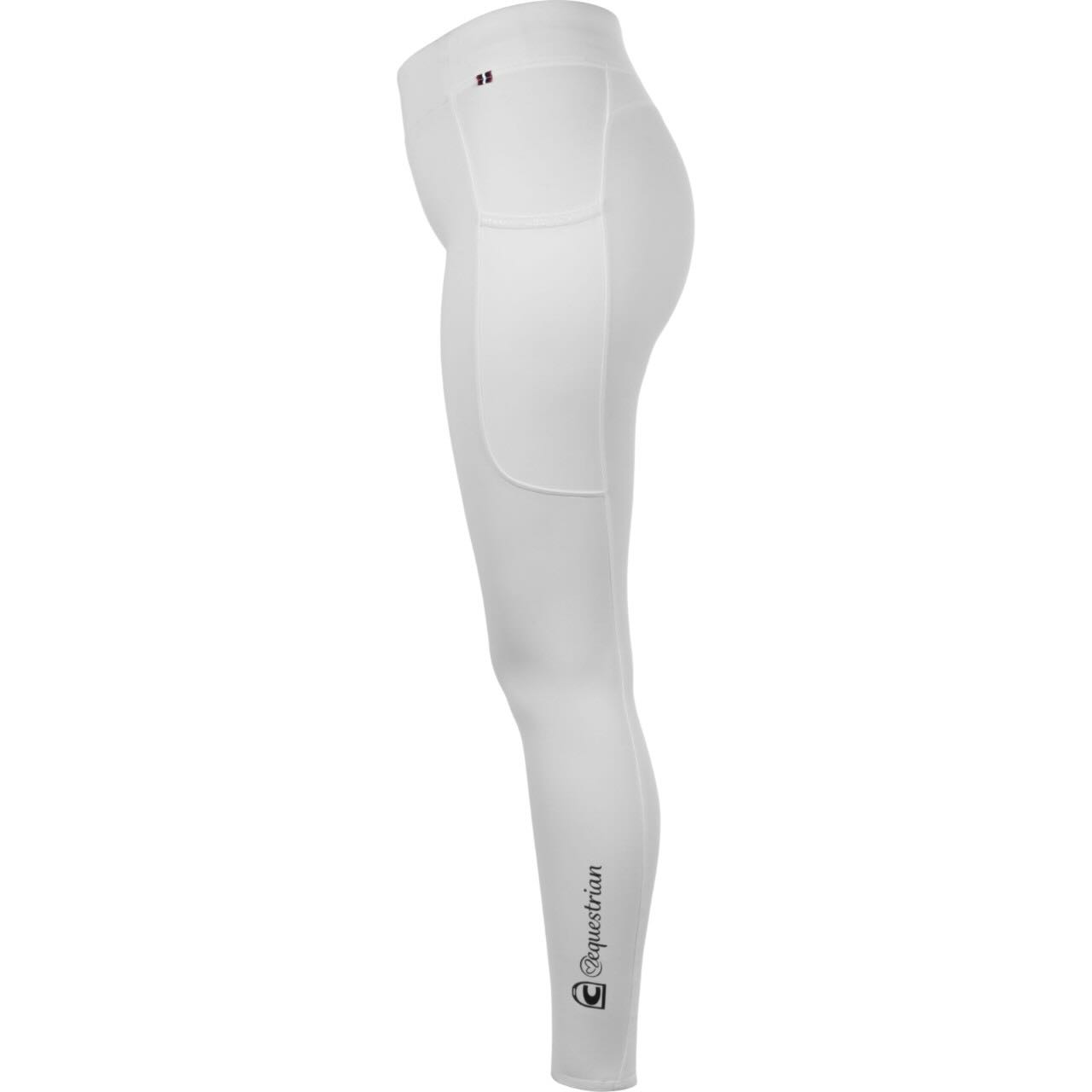 Zwei seitliche Handytaschen mit tonigem Einfassband bieten praktischen Stauraum für dein Smartphone. Der CavaGrip-Vollbesatz aus Silikon garantiert festen Halt im Sattel – ideal für intensive Trainingseinheiten. Visuelle Highlights setzt der große Cavallo-Kontrastdruck auf der linken Wade sowie der kleine Druck auf dem rückwärtigen Bund. Ein funkelnder Cavallo-Steigbügel aus Kristallsteinen oberhalb der rechten Tasche verleiht der Leggings eine edle Note. Die Kombination aus Funktionalität und Stil macht dieses Modell zu einem Favoriten für Turnier und Alltag. Mit Liebe zum Detail entworfen, vereint diese Leggings alles, was moderne Reitmode ausmacht.