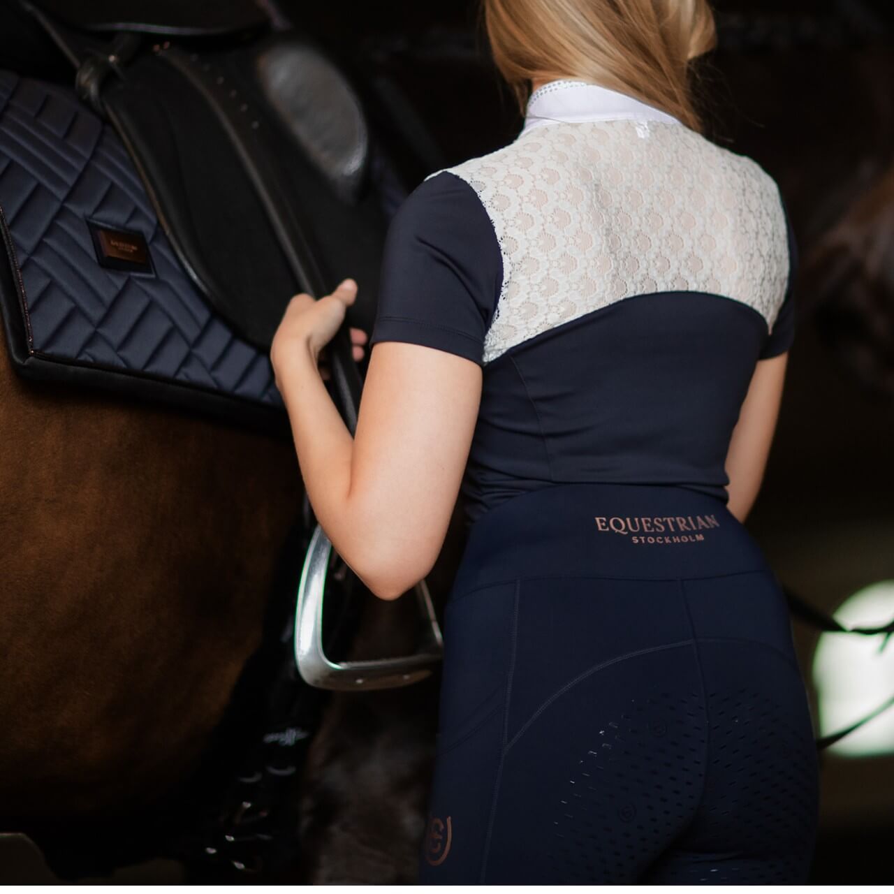 Turniershirt Damen Crystal Champion Competition Top White Dark Ocean von Equestrian Stockholm vereint stilvolle Eleganz mit funktionaler Exzellenz. Mit seinem außergewöhnlichen Design in edlem Ozeanblau und funkelnden Kristalldetails bietet es dir nicht nur einen beeindruckenden Look, sondern auch höchsten Tragekomfort und Bewegungsfreiheit. Perfekt für Reitsportbegeisterte, die Wert auf Qualität und Stil legen.