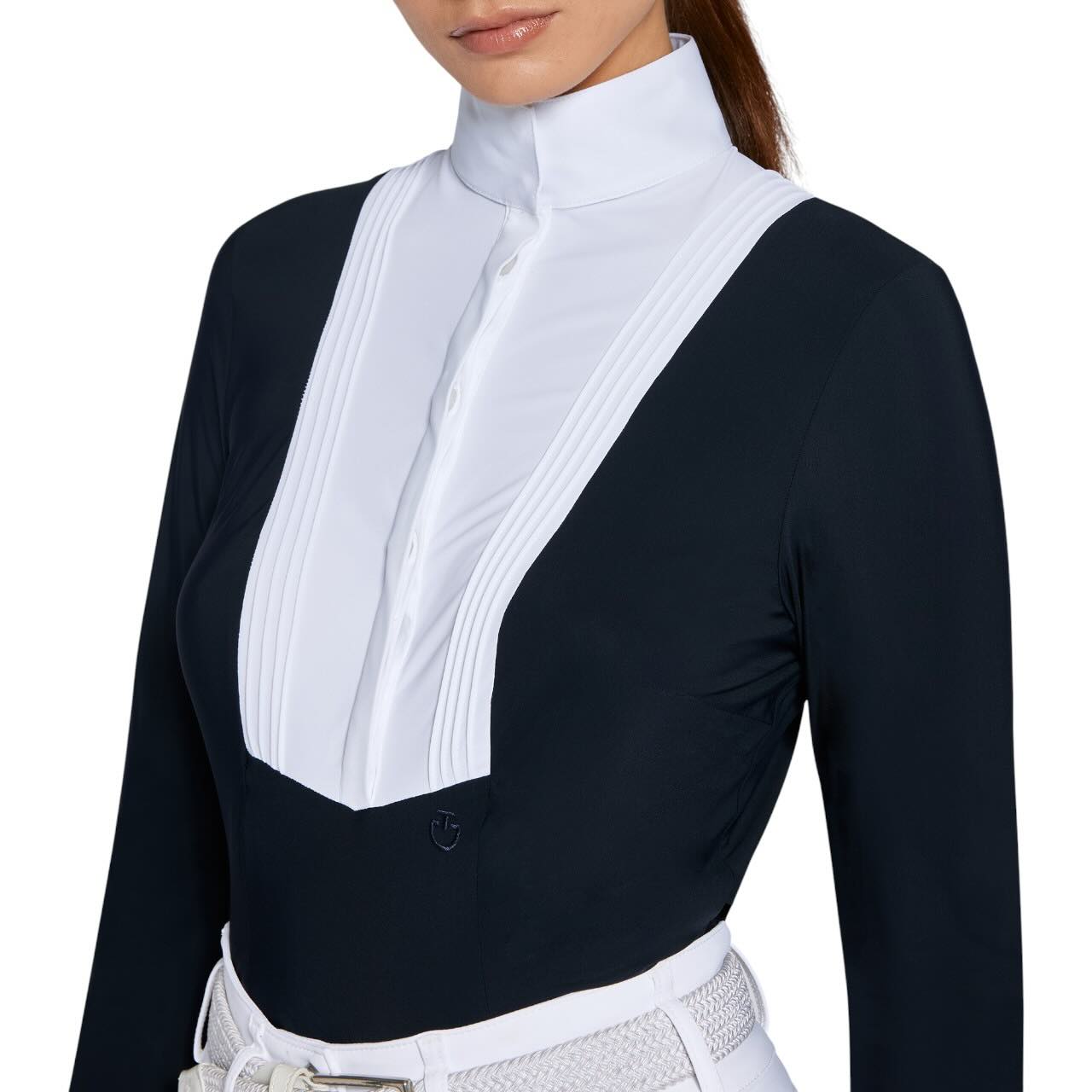 Mit dem Cavalleria Toscana Turniershirt Damen Langarm American HW 2025 Competition Shirt kombinierst du stilvolle Eleganz mit innovativer Funktionalität. Dieses hochwertige Turniershirt vereint klassisches Design, atmungsaktive Materialien und höchsten Tragekomfort – perfekt für deinen professionellen Auftritt im Viereck.