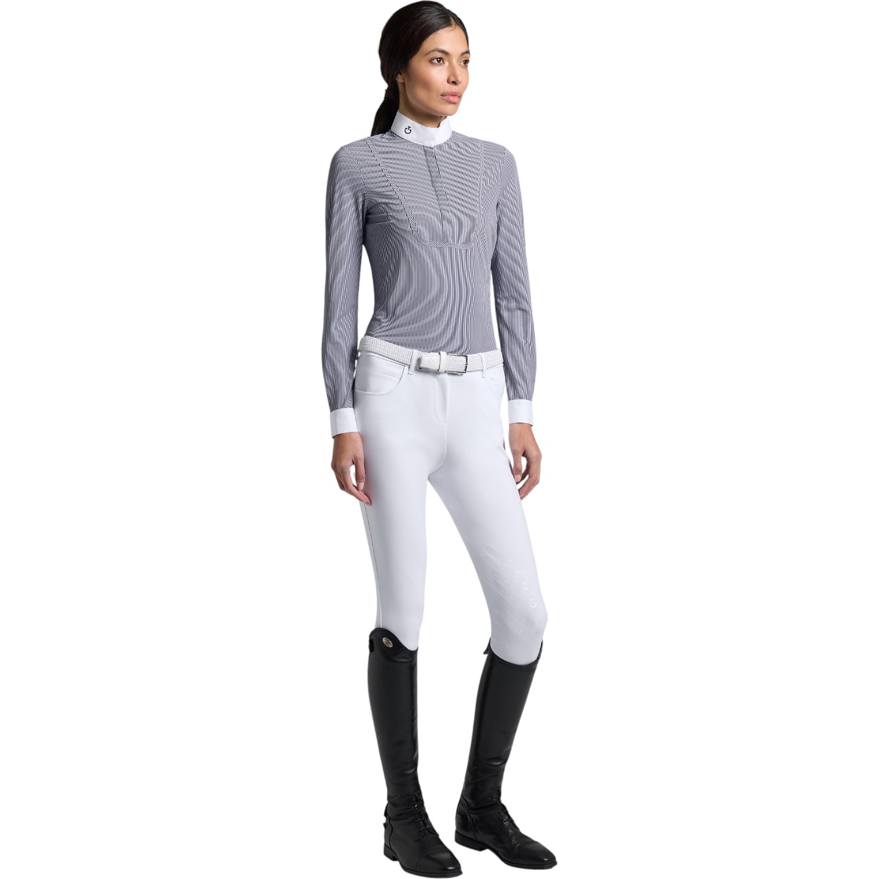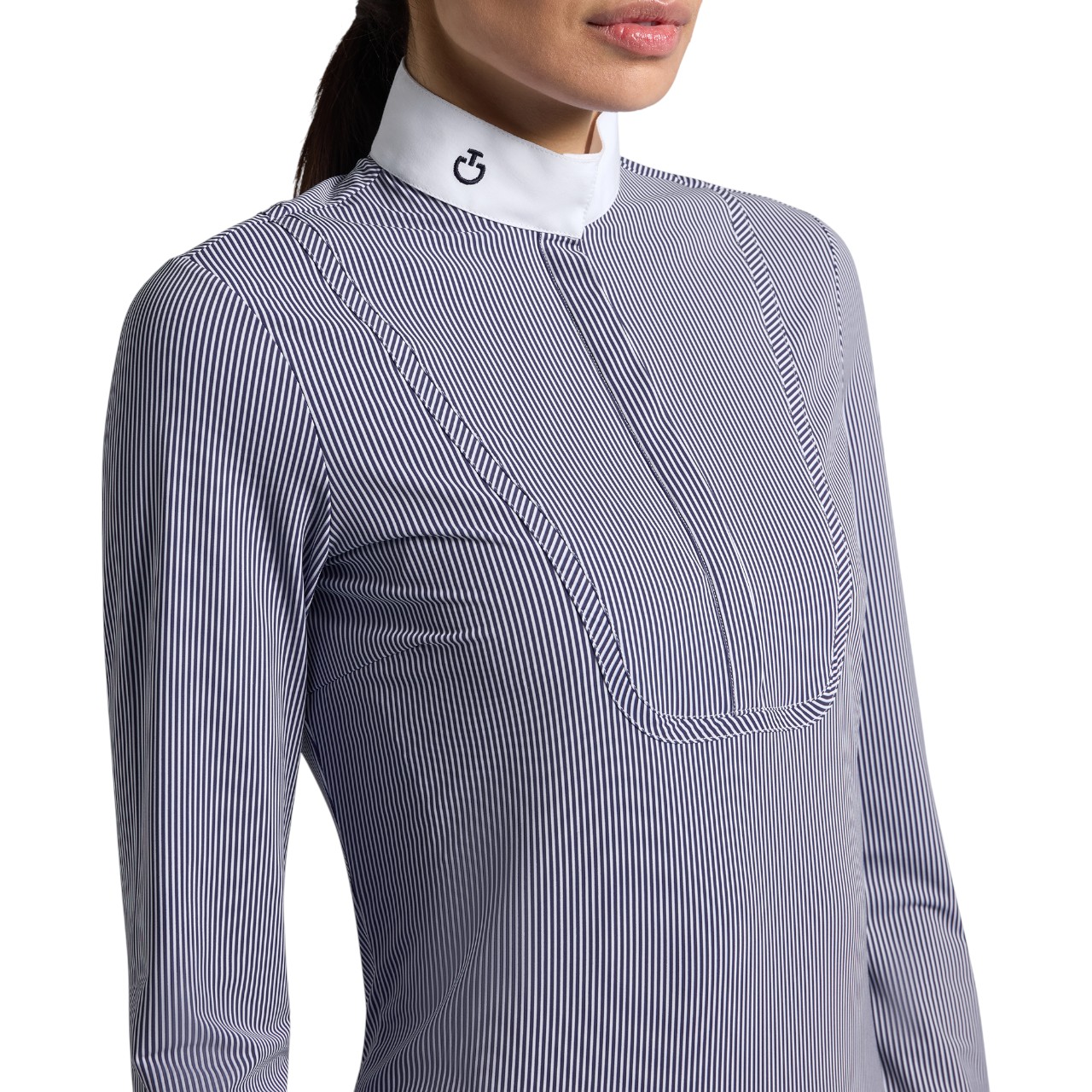 Das Cavalleria Toscana Turniershirt Damen Langarm Stripes HW 2025 Competition Shirt verbindet zeitlose Eleganz mit moderner Funktionalität. Mit edlem Streifenmuster, weißen Popeline-Details und atmungsaktivem Stretch-Material setzt es neue Maßstäbe für stilvolles und komfortables Reiten im Turnier.