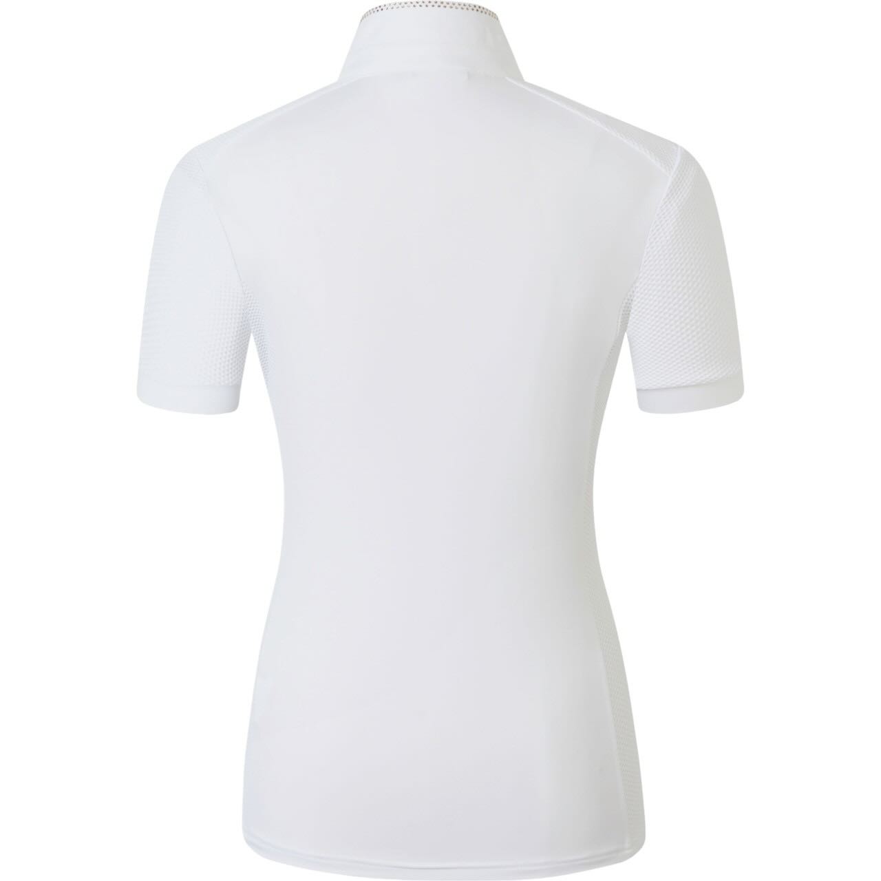Das Competition Shirt überzeugt durch sein leichtes, atmungsaktives Funktionsmaterial. Es unterstützt eine effektive Luftzirkulation bei körperlicher Belastung. Gleichzeitig gewährleistet es eine optimale Feuchtigkeitsregulierung. So bleibt das Tragegefühl auch unter dem Turnierjacket angenehm trocken. Das elastische Gewebe bietet maximale Bewegungsfreiheit im Sattel. Damit kannst du dich voll auf deine Vorstellung konzentrieren.