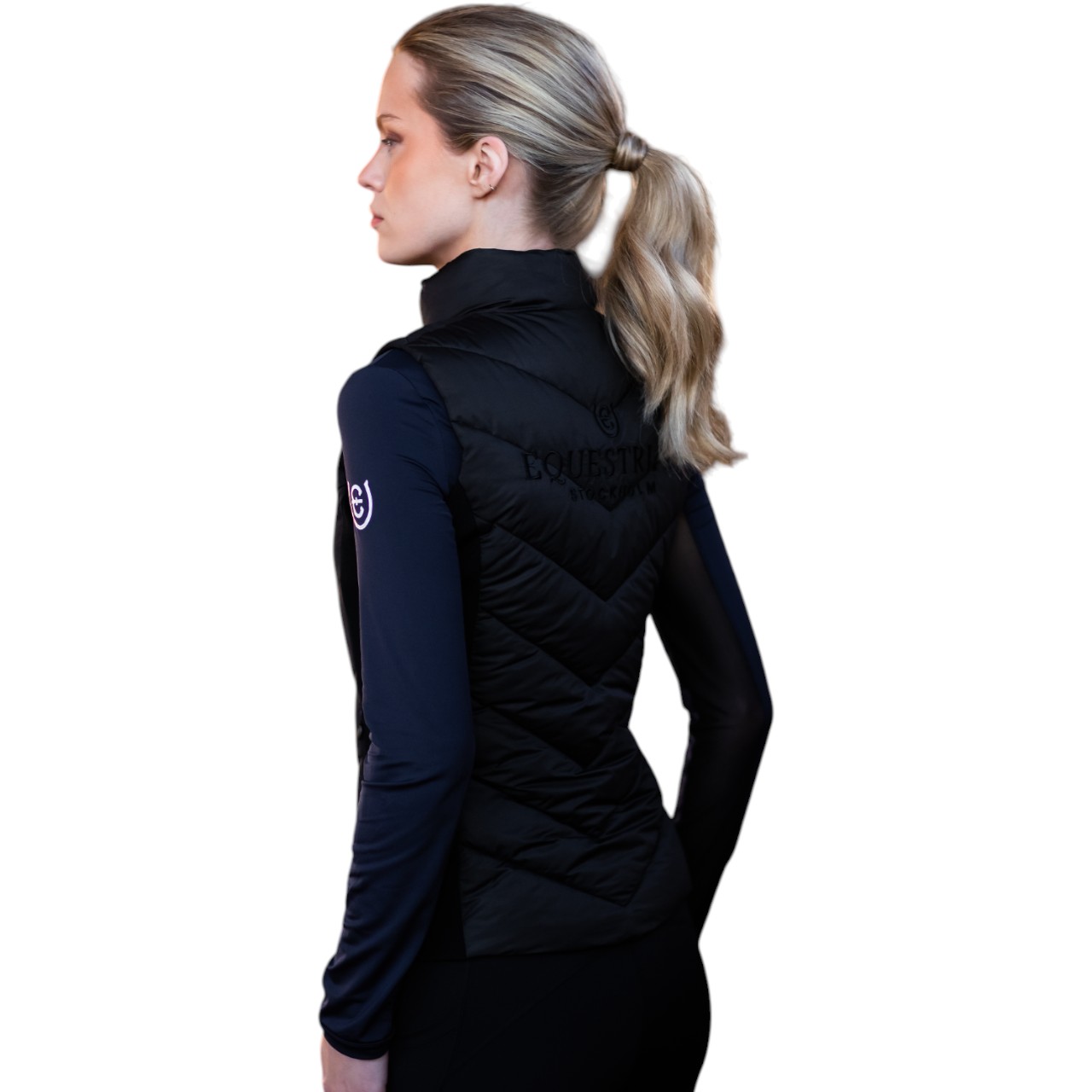 Equestrian Stockholm Steppweste Damen Versatile Black Weste vereint stilvolle Optik mit funktionalen Details – ideal für deine Reitoutfits im Frühling und Herbst. Die cleane Silhouette, das edle Schwarz und das dezente Logo machen sie zu einem echten Must-have für anspruchsvolle Reiterinnen.