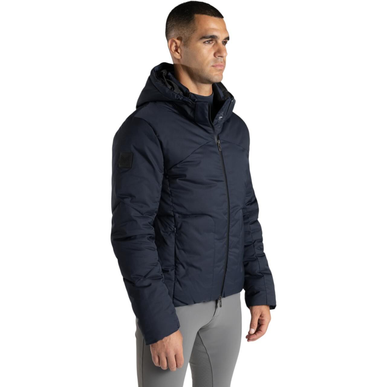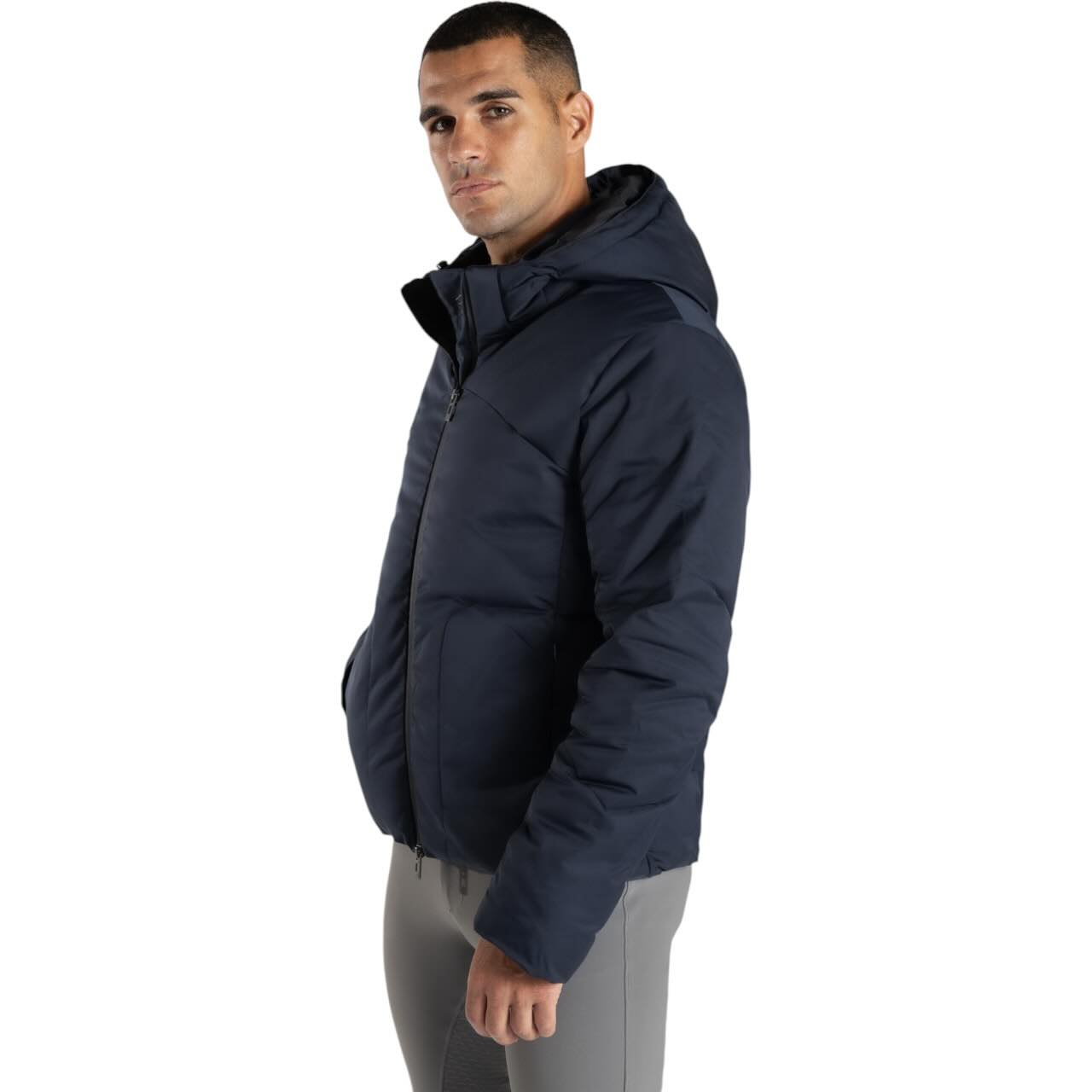 Die Bomberjacke Herren Elan schützt dich zuverlässig vor Wind und Wetter. Dank des hochwertigen Hightech-Outdoor-Stoffs ist sie wasserabweisend, winddicht und dennoch atmungsaktiv – perfekt für das Training oder den Stallalltag. Ein praktischer Doppelreißverschluss sorgt für Flexibilität beim Reiten. Die Kapuze ist abnehmbar und mit einem versteckten Verschluss sowie Druckknopf ausgestattet, damit sie bei Bewegung nicht stört. So bleibst du auch bei winterlichen Ausritten angenehm warm und beweglich. Rippbündchen an den Ärmeln halten zusätzlich die Kälte draußen.