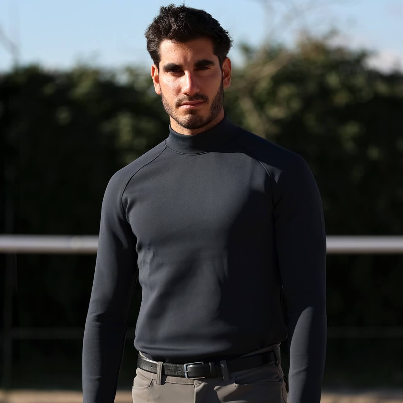 Das Herren Funktionsshirt Terra Base Layer besticht durch sein minimalistisches Design in den eleganten Farben Navy und Taupe, das sich mühelos in jede Reitgarderobe einfügt. Der figurnahe Schnitt sorgt für eine stilvolle Silhouette, während der mittelhohe Kragen dich vor Wind und Kälte schützt. Trage es als Basisschicht oder eigenständig als modisches Statement.